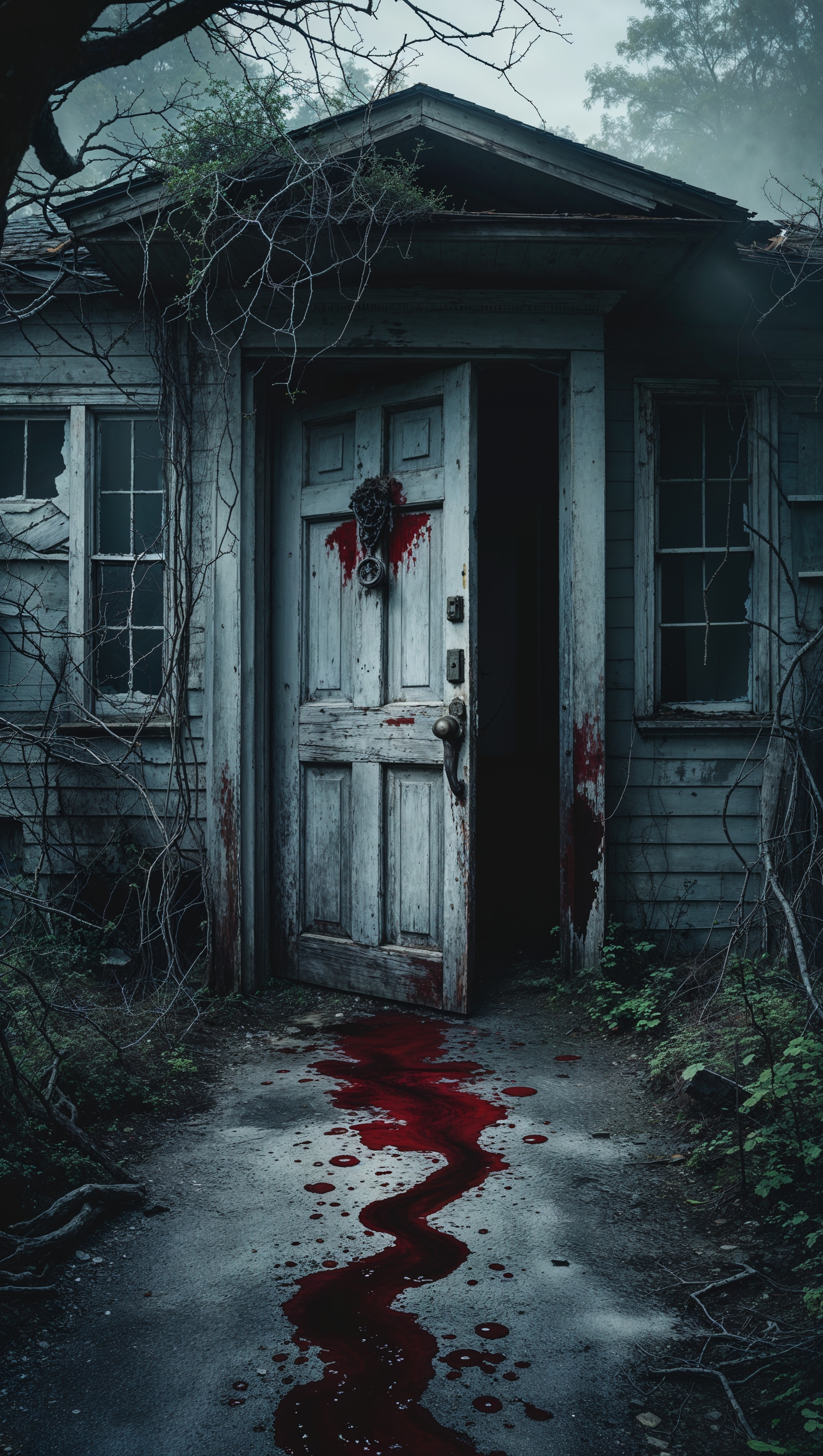 1664x2944 Mysterious blood trail leading into an abandoned house