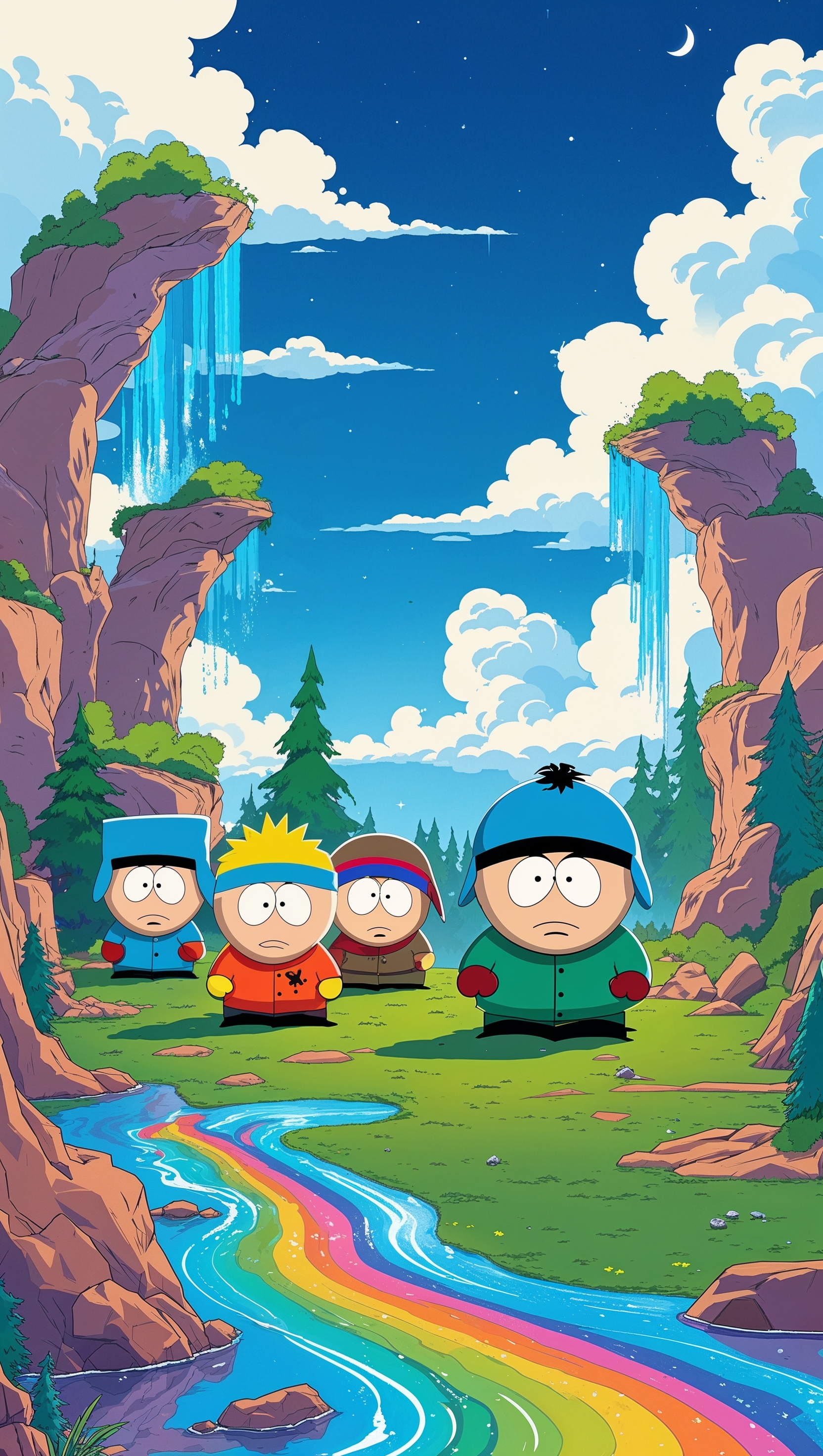 Design a surreal-style South Park wallpaper with characters in a fantasy world for iPhone 1664x2944 Design a surreal-style South Park wallpaper with characters in a fantasy world for iPhone
