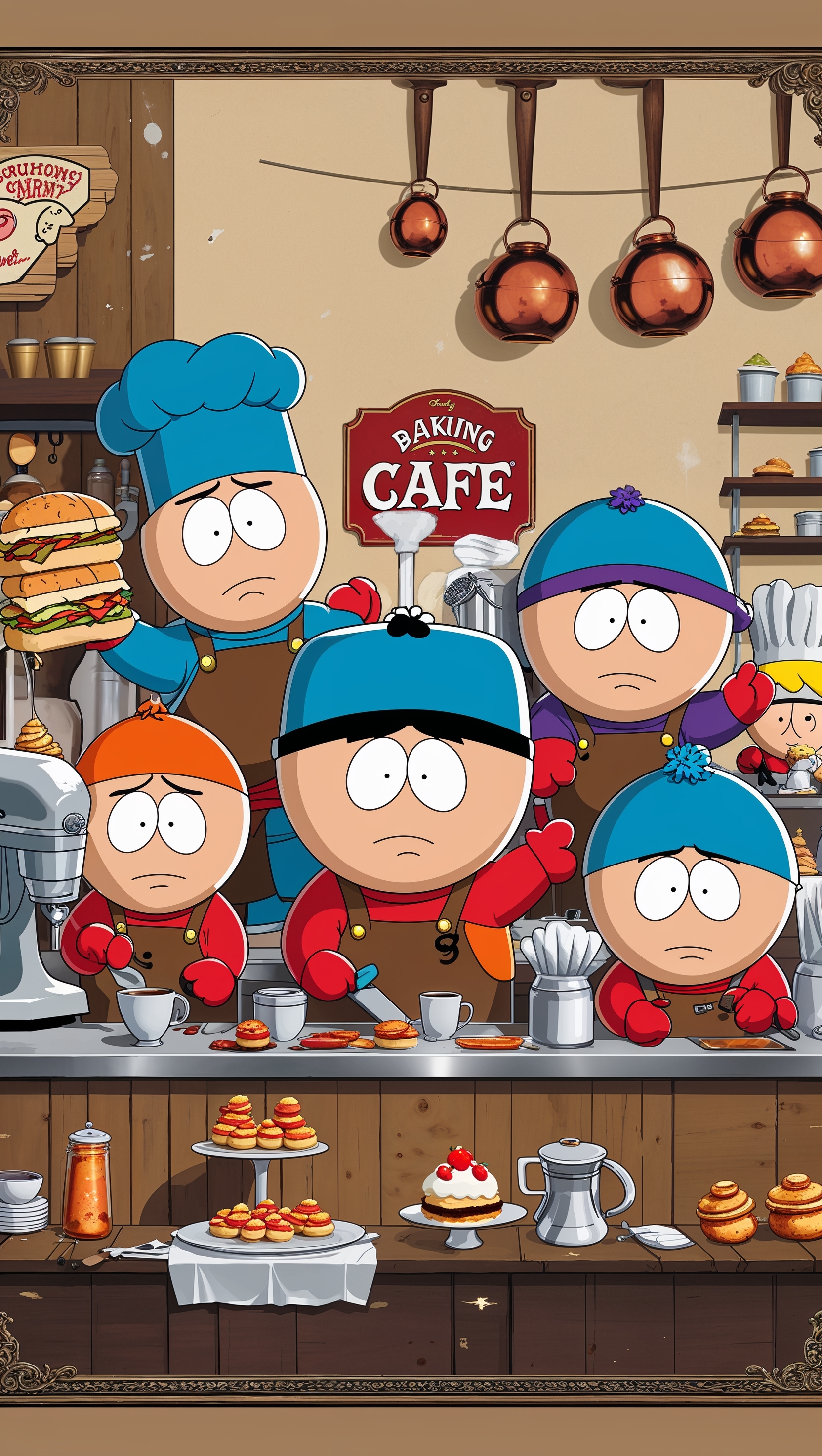 Create a wallpaper with South Park characters working in a café for iPhone 1664x2944 Create a wallpaper with South Park characters working in a café for iPhone