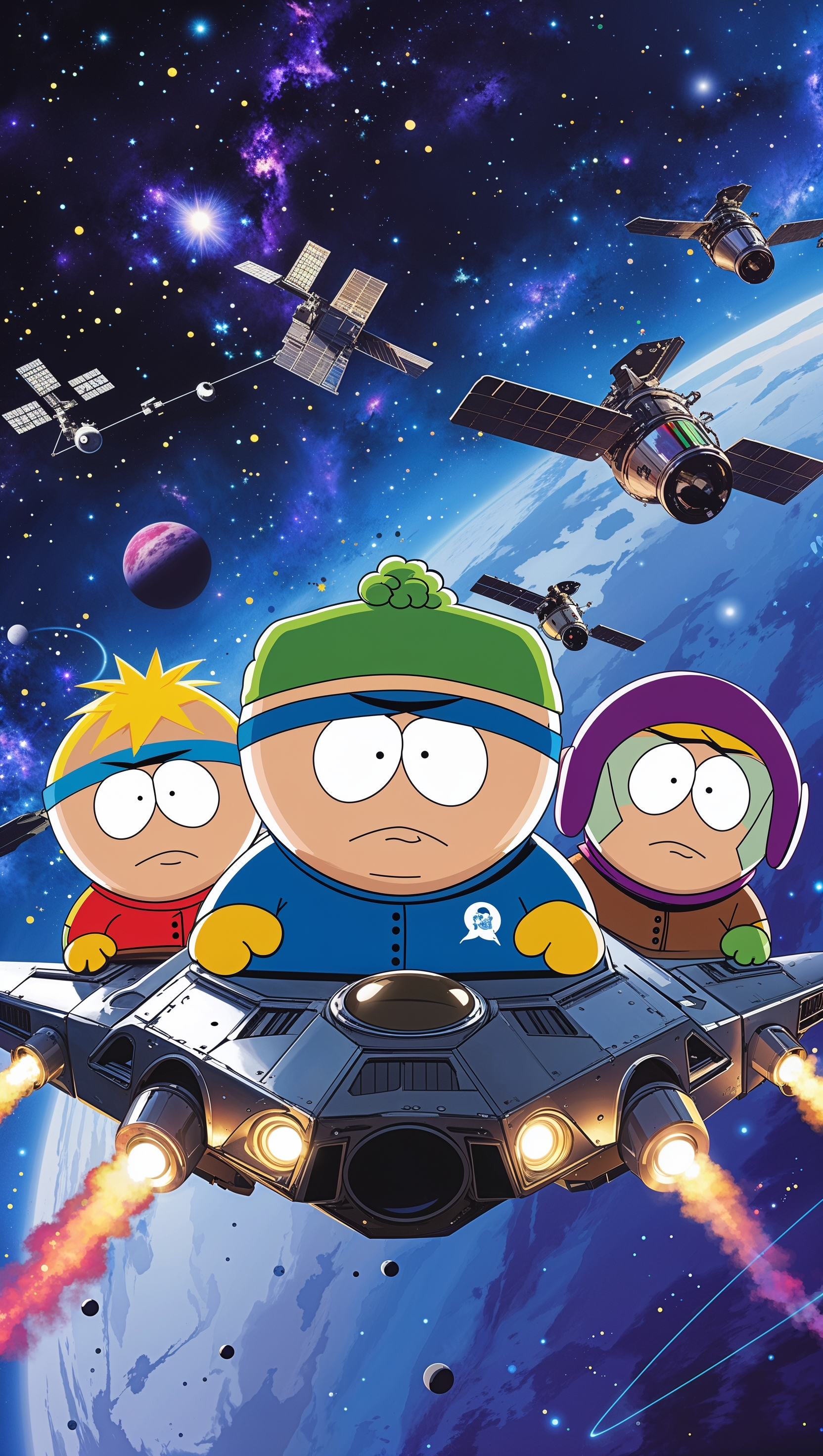 Create a wallpaper with South Park characters traveling to space for iPhone 1664x2944 Create a wallpaper with South Park characters traveling to space for iPhone