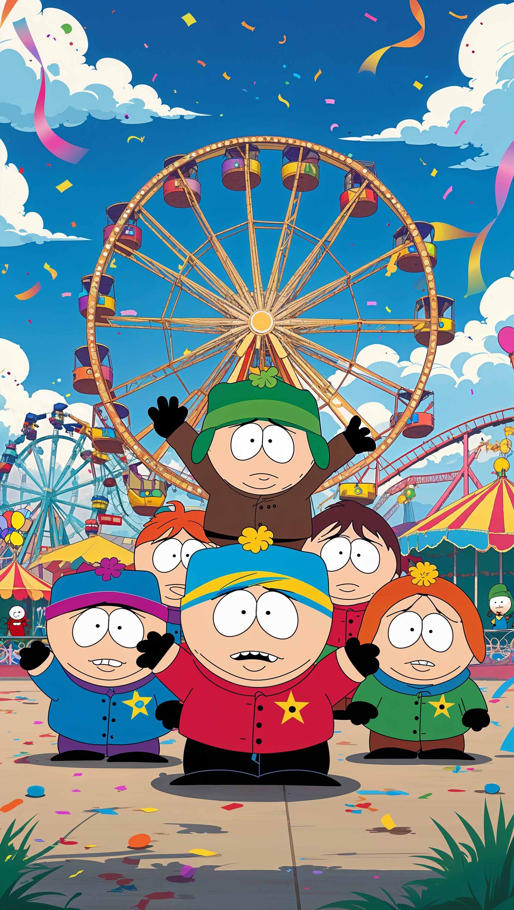 Design a wallpaper with South Park characters at an amusement park for iPhone 1664x2944 Design a wallpaper with South Park characters at an amusement park for iPhone