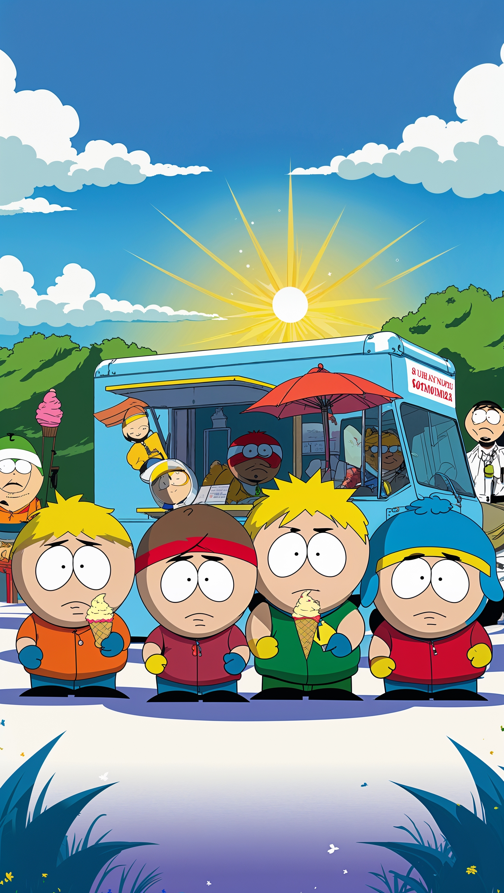 A South Park wallpaper with characters eating ice cream on a summer day for iPhone 1664x2944 A South Park wallpaper with characters eating ice cream on a summer day for iPhone