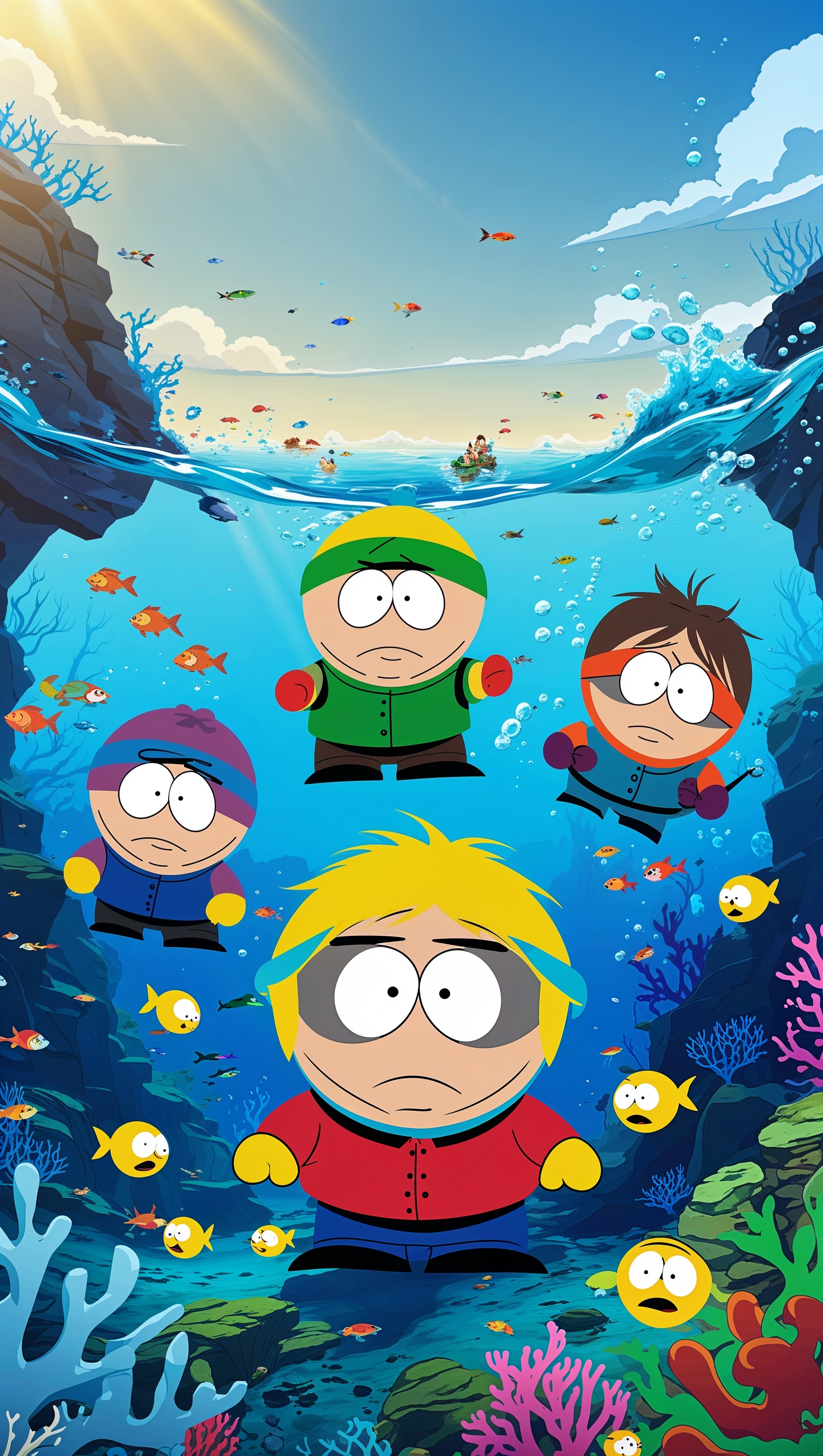 A South Park wallpaper with characters underwater for iPhone 1664x2944 A South Park wallpaper with characters underwater for iPhone