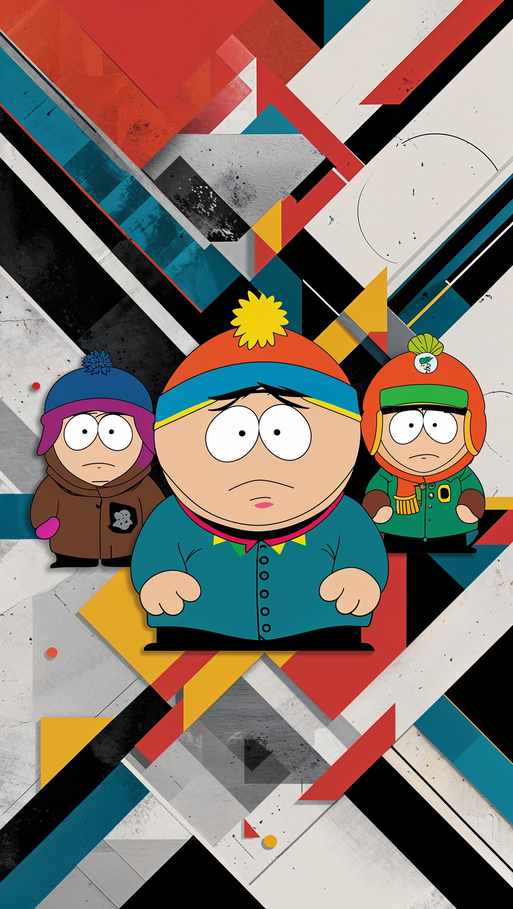Create a geometric South Park wallpaper with characters for iPhone 1664x2944 Create a geometric South Park wallpaper with characters for iPhone