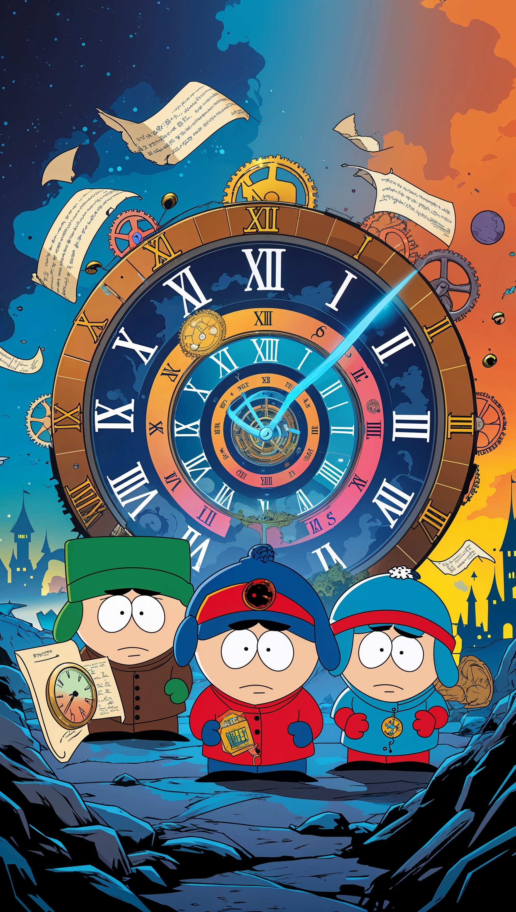Create a South Park wallpaper with characters traveling through time for iPhone 1664x2944 Create a South Park wallpaper with characters traveling through time for iPhone