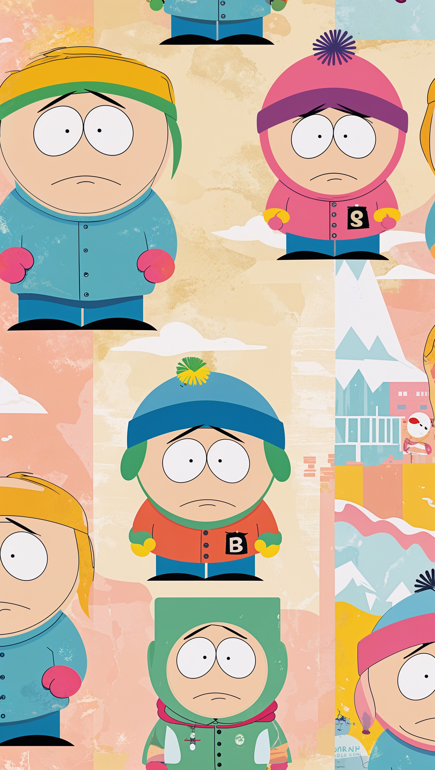 Create a pastel-colored South Park wallpaper with characters for iPhone 1664x2944 Create a pastel-colored South Park wallpaper with characters for iPhone