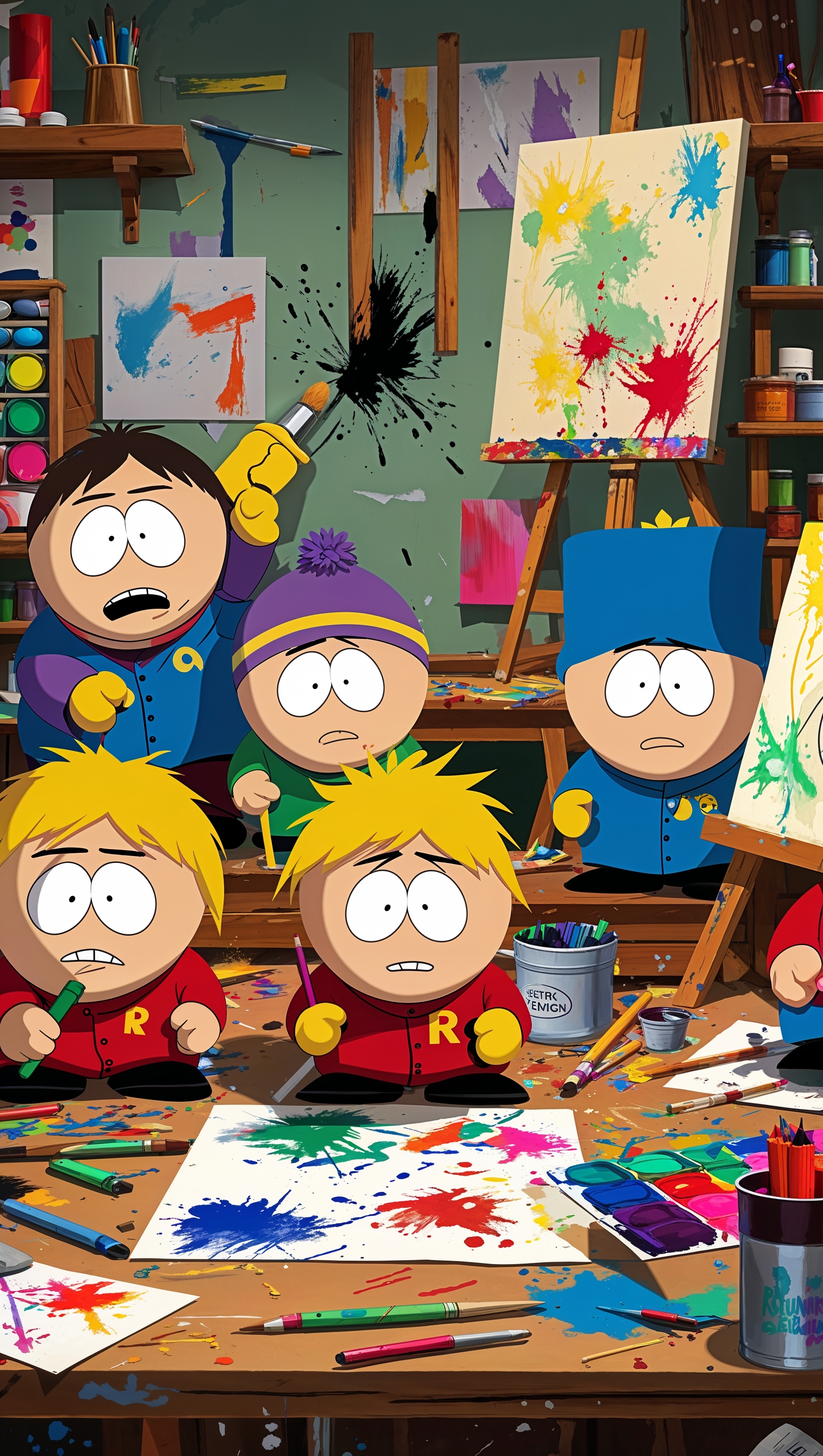 A South Park wallpaper with characters drawing in an art studio for iPhone 1664x2944 A South Park wallpaper with characters drawing in an art studio for iPhone