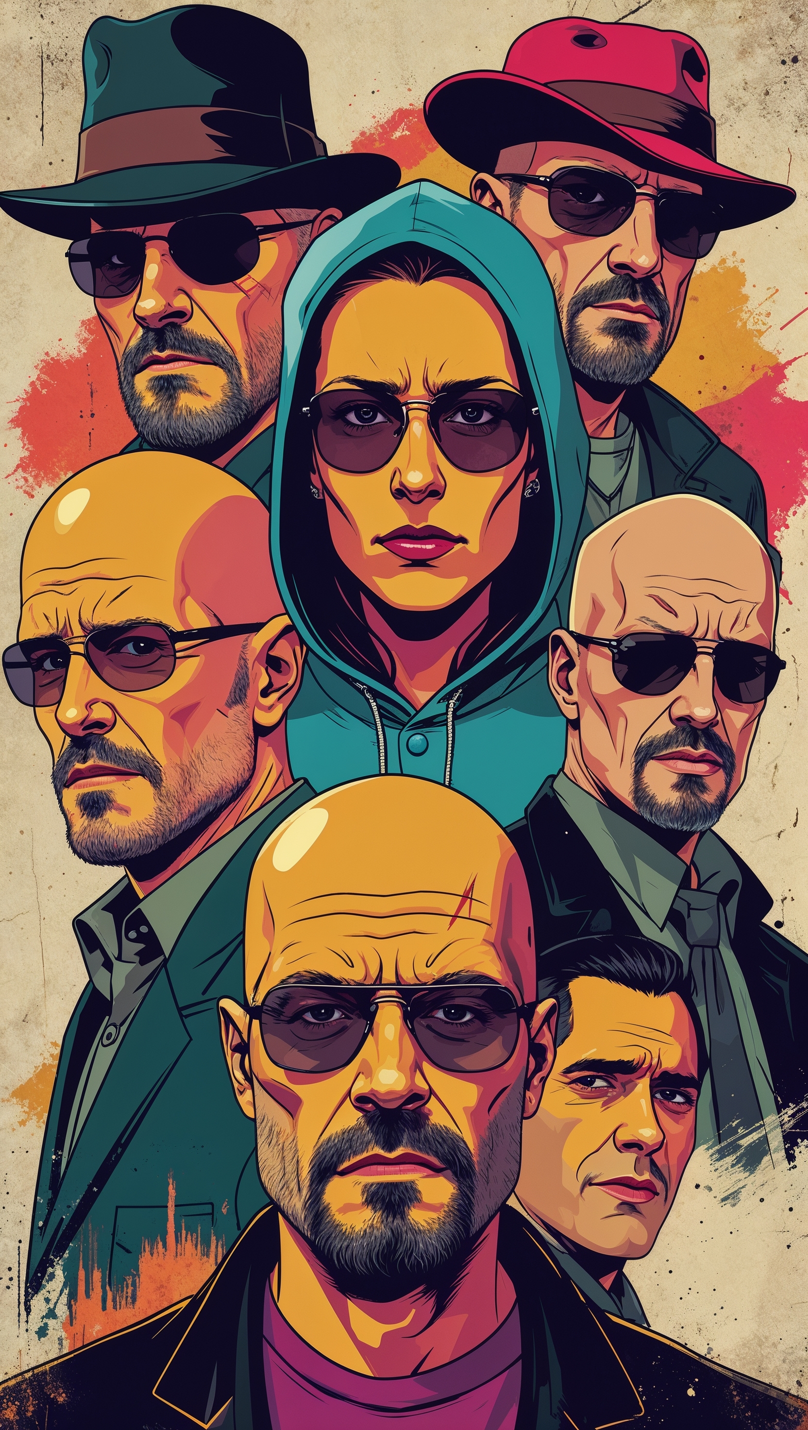 1664x2944 Design an iPhone wallpaper resembling a collage of various Breaking Bad characters