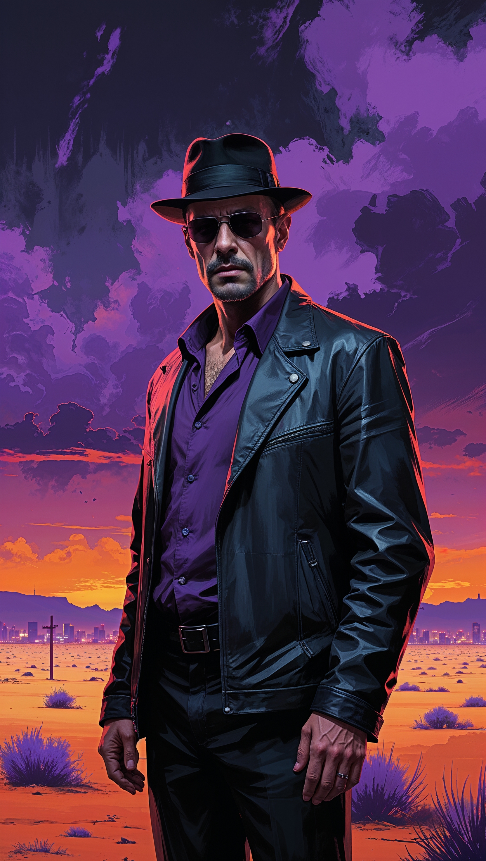 1664x2944 Create a digital painting wallpaper for iPhone featuring Walter White as Heisenberg