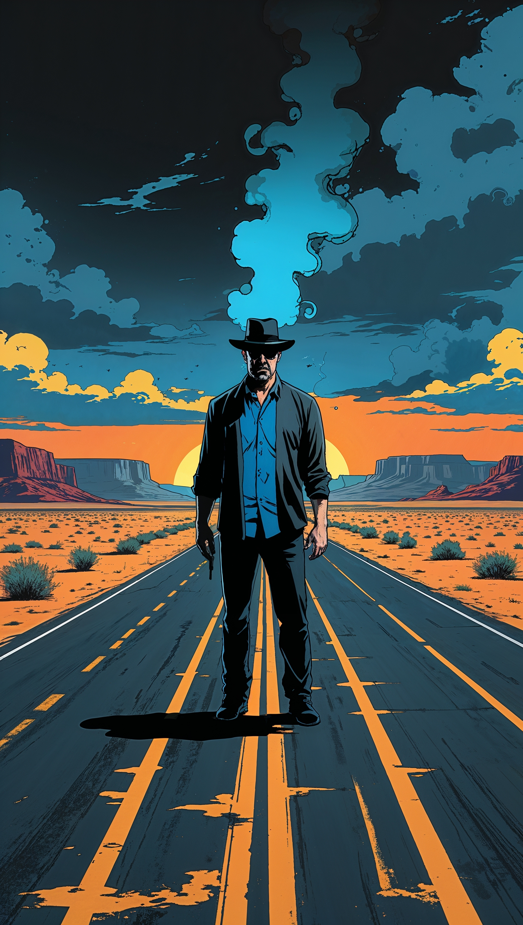 1664x2944 Design an iPhone wallpaper with a graphic image of Heisenberg and desert roads