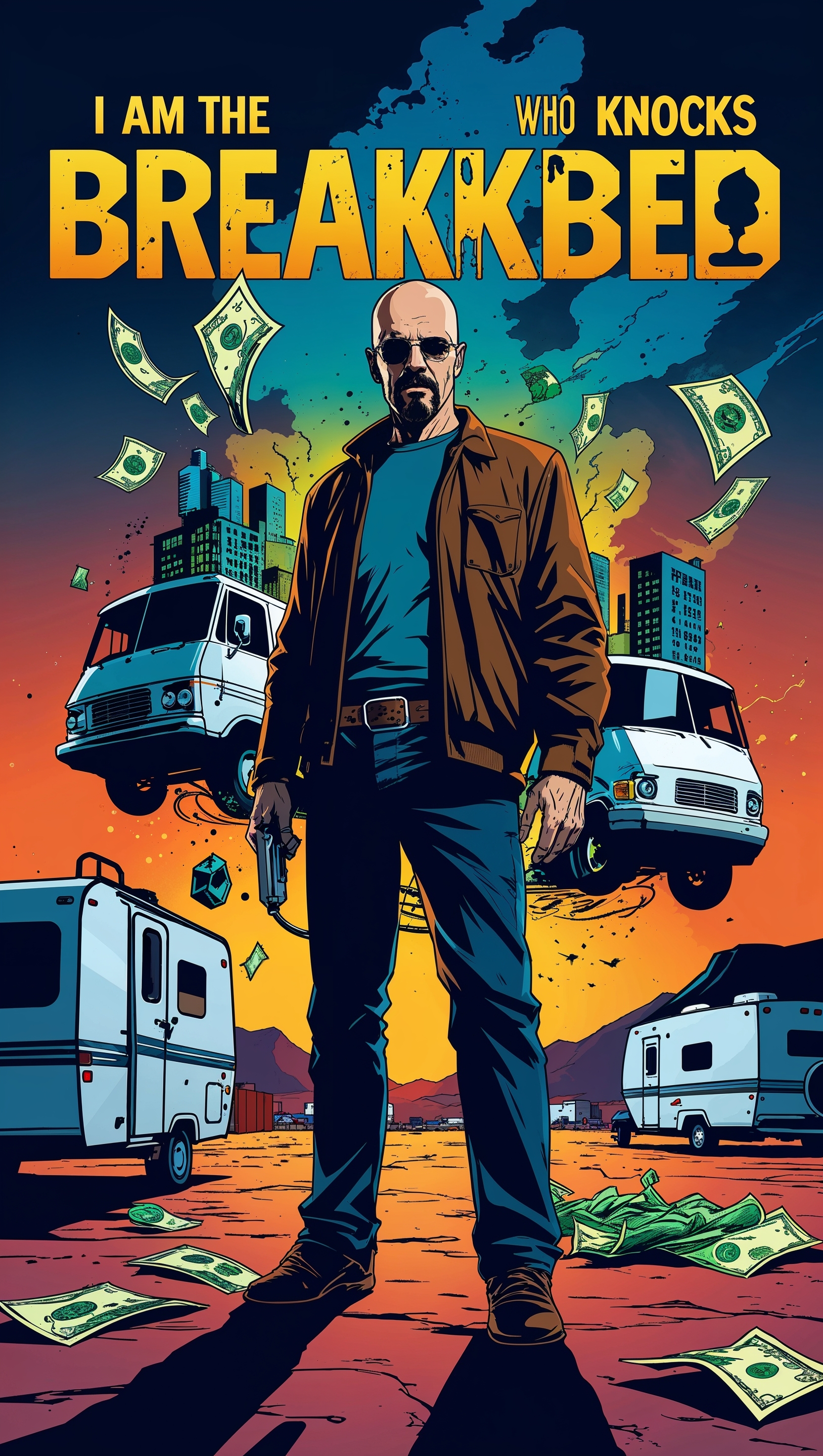 1664x2944 Create an iPhone wallpaper combining the Breaking Bad series with a comic book style