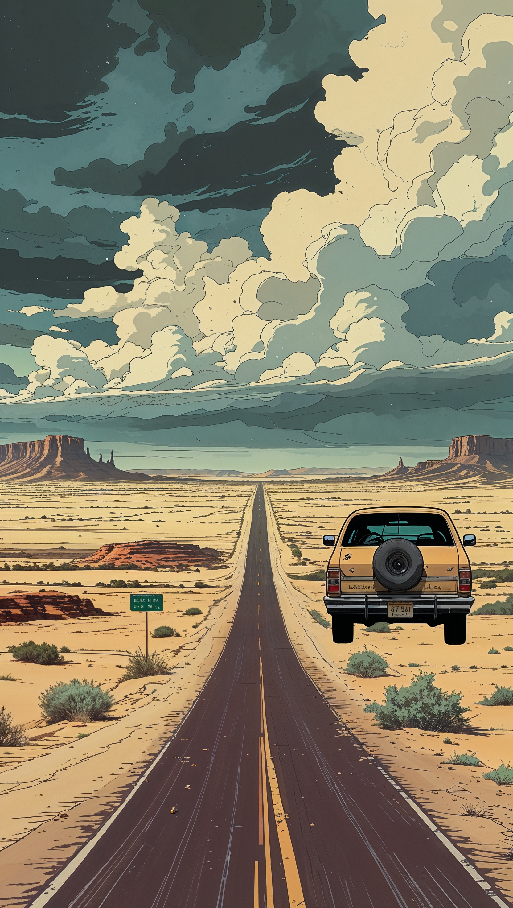 1664x2944 Create an iPhone wallpaper with a view of desert roads and dramatic scene sequences from Breaking Bad