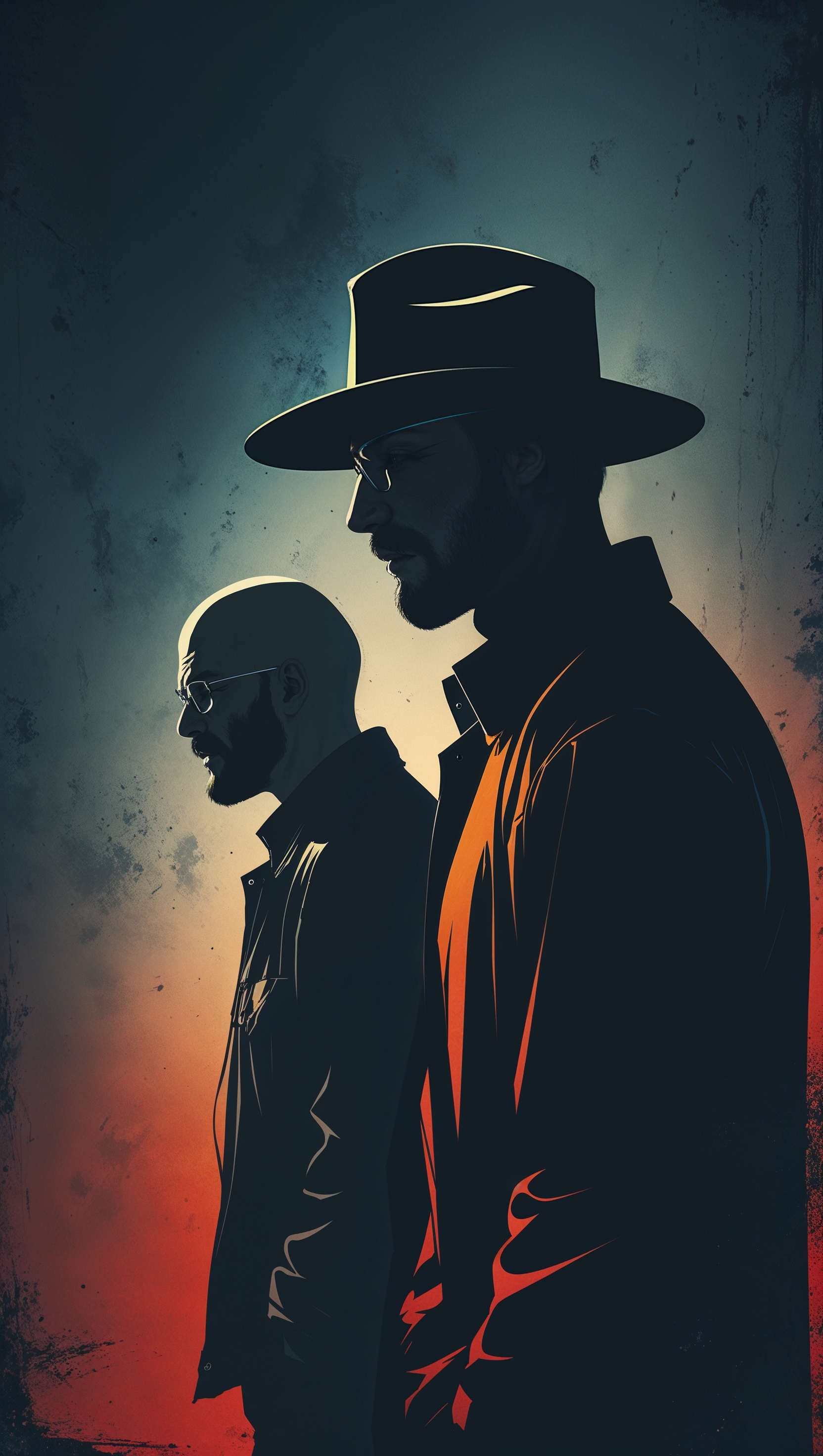 1664x2944 Design an iPhone wallpaper with dark colors and shadows of the main characters of Breaking Bad