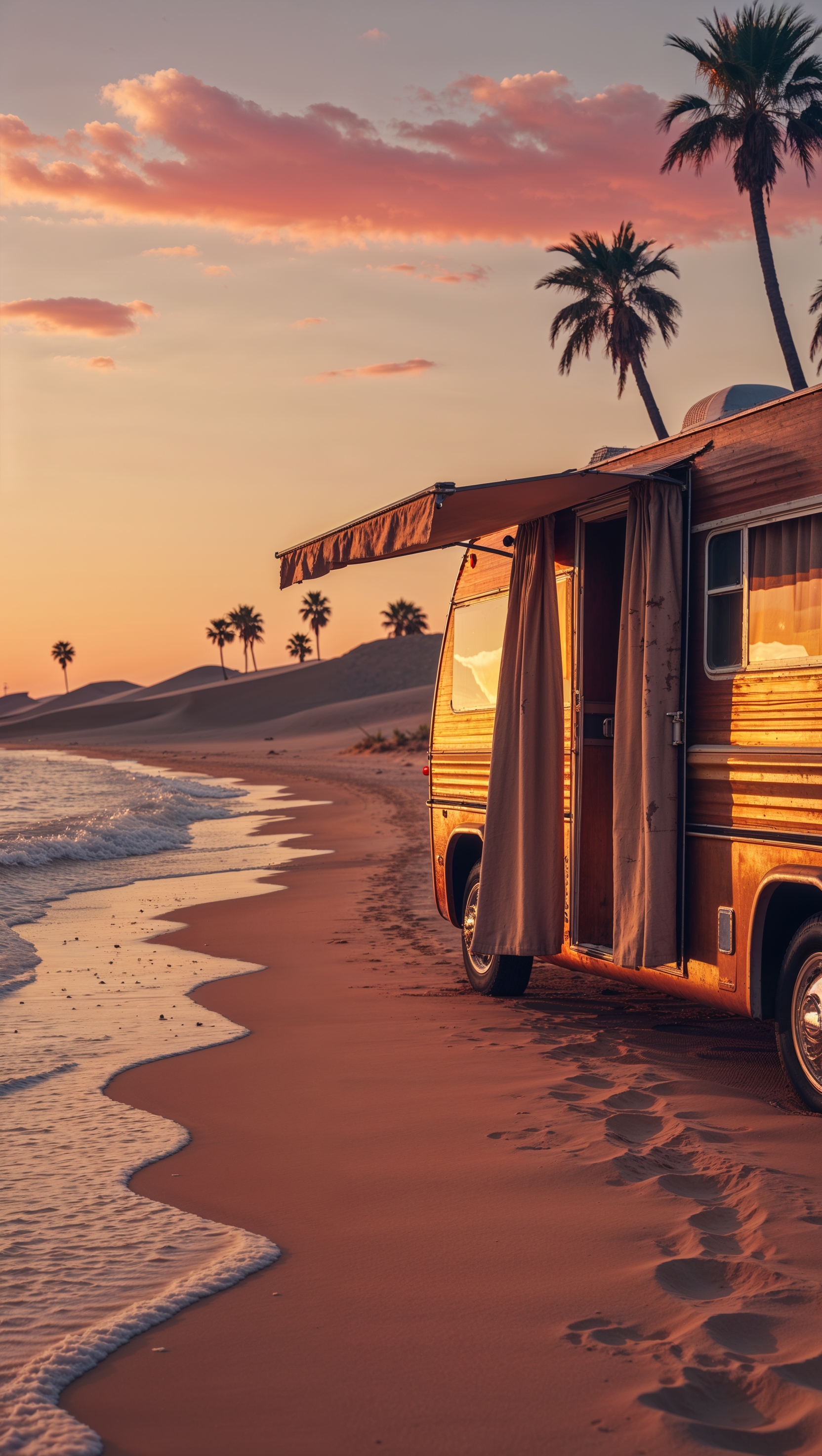 1664x2944 Design an iPhone wallpaper featuring a desert beach and the RV from Breaking Bad
