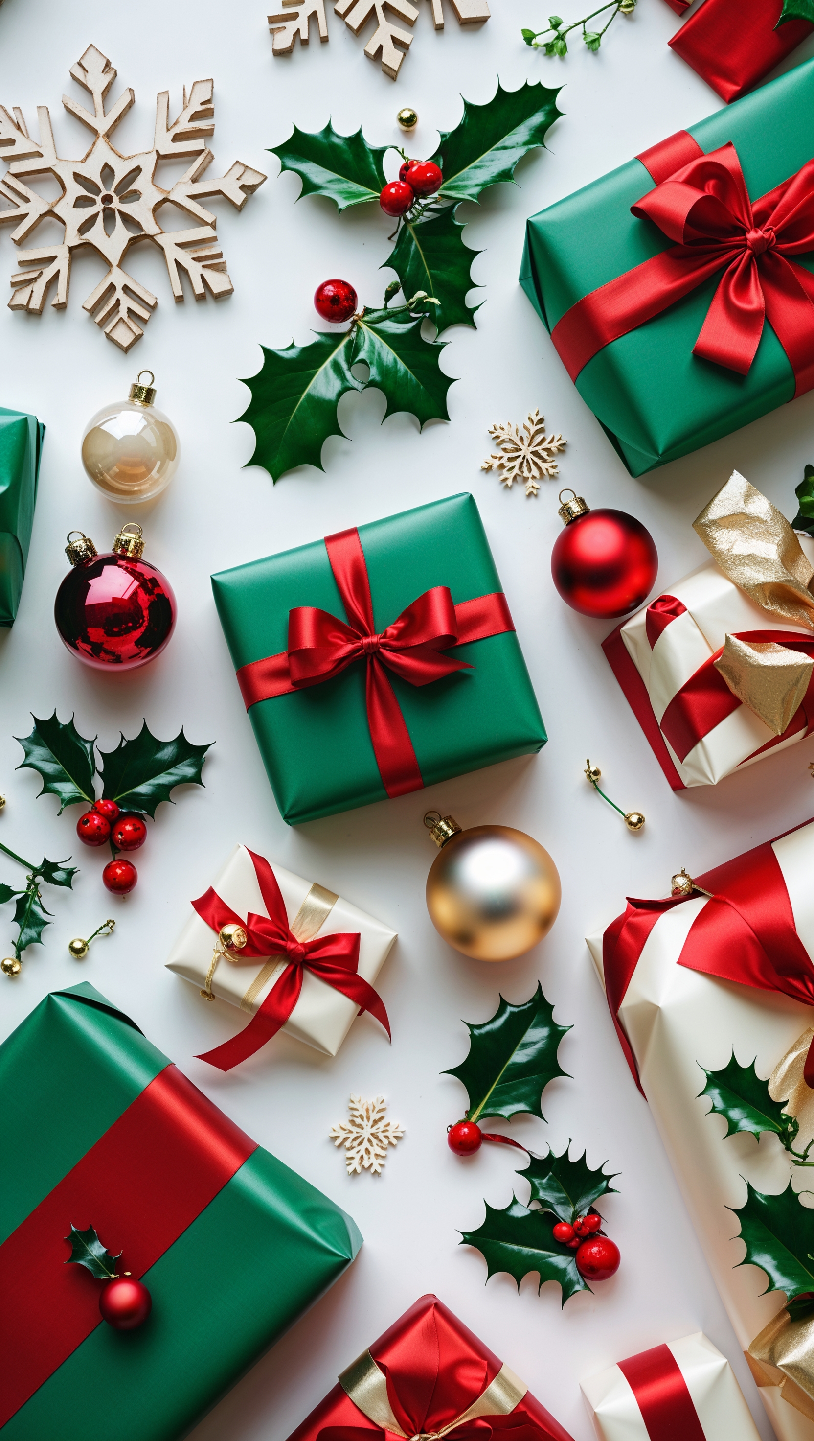1664x2944 Preppy style iPhone Christmas wallpaper with gift images and classic decorations