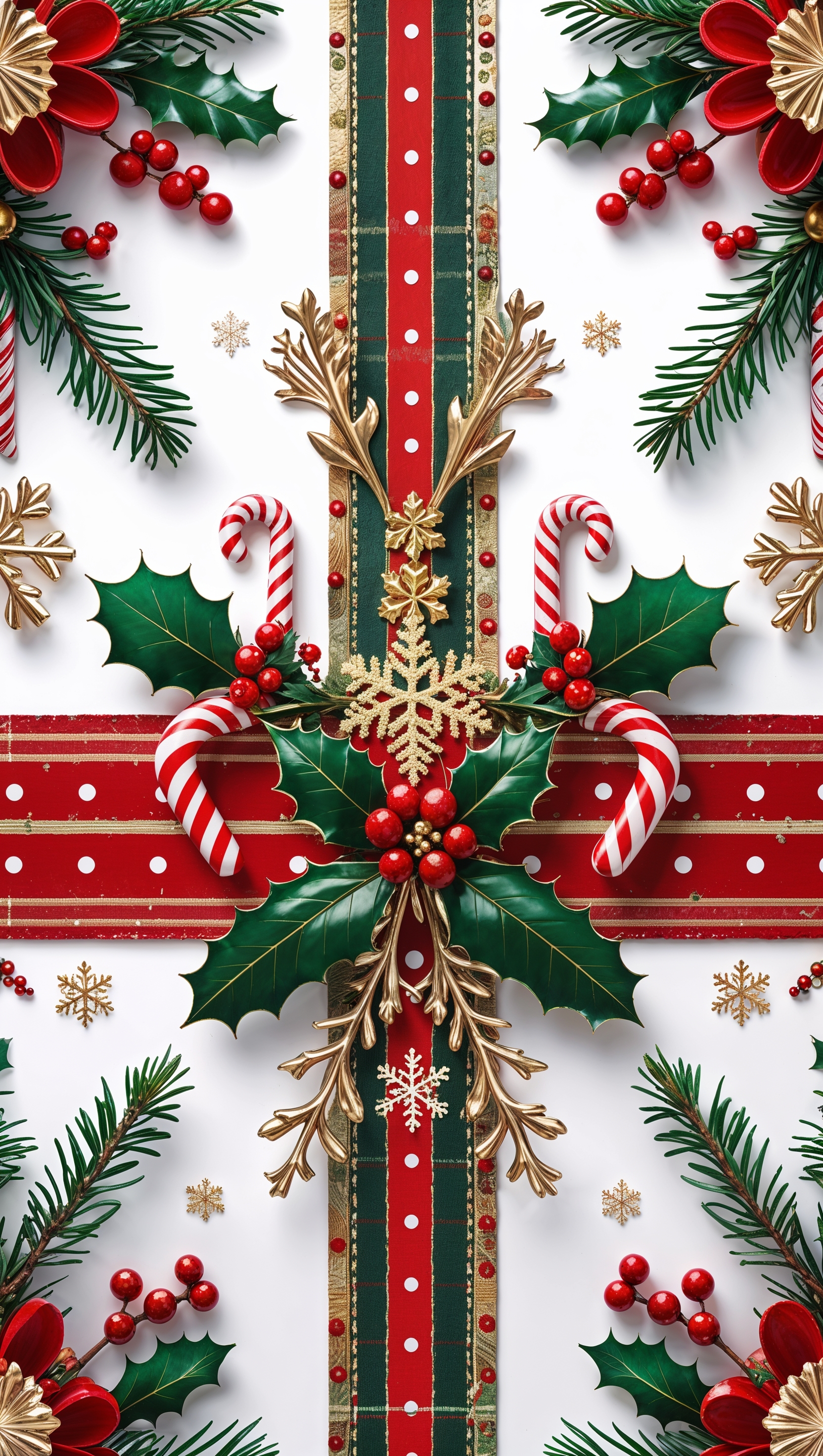 1664x2944 iPhone wallpaper with Christmas decorations in preppy style and classic decorative patterns