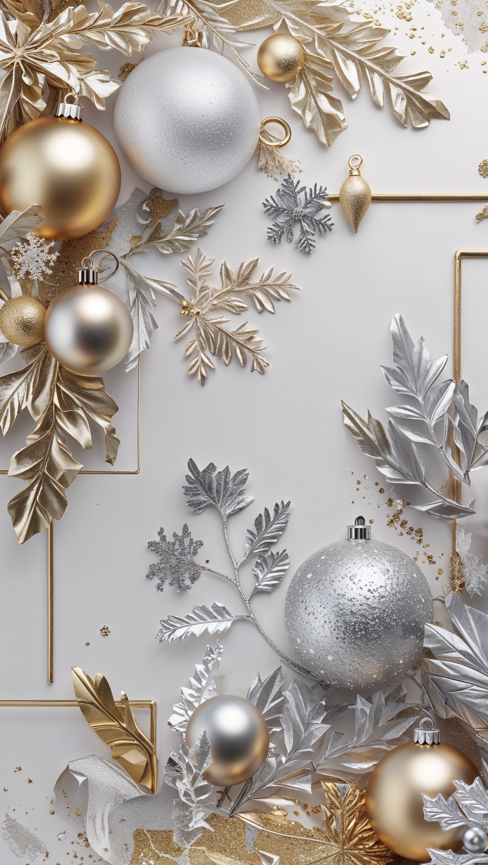 1664x2944 iPhone Christmas wallpaper with chic design and gold and silver colors
