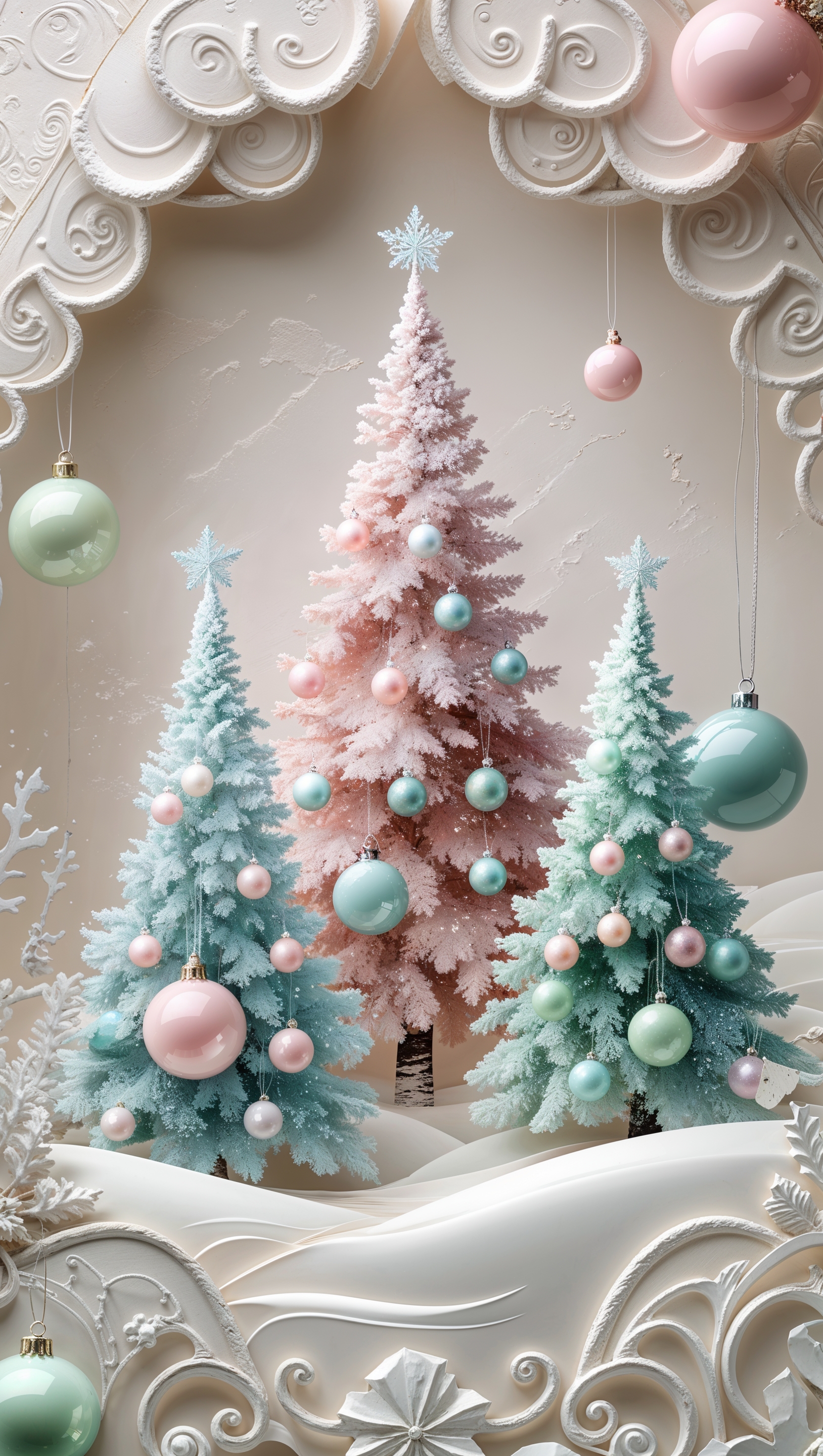 1664x2944 iPhone Christmas wallpaper with pastel colors and Christmas symbols like trees and baubles