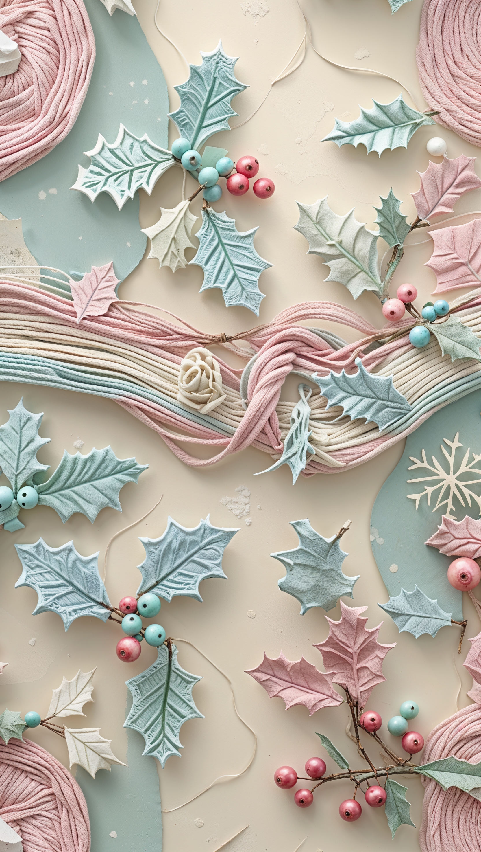 1664x2944 iPhone wallpaper with traditional Christmas patterns and pastel colors