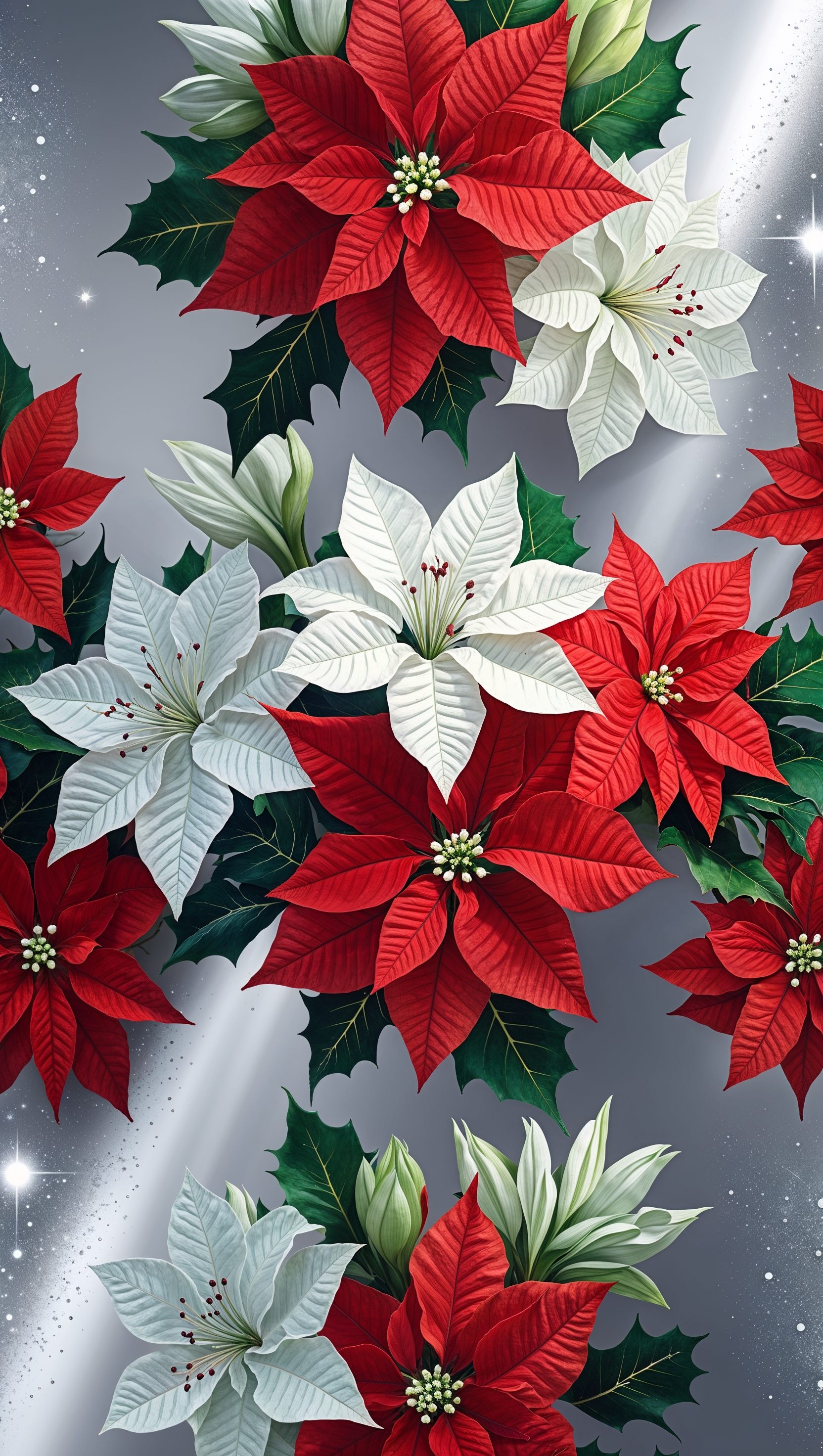 1664x2944 iPhone wallpaper with Christmas flower images and silver colors