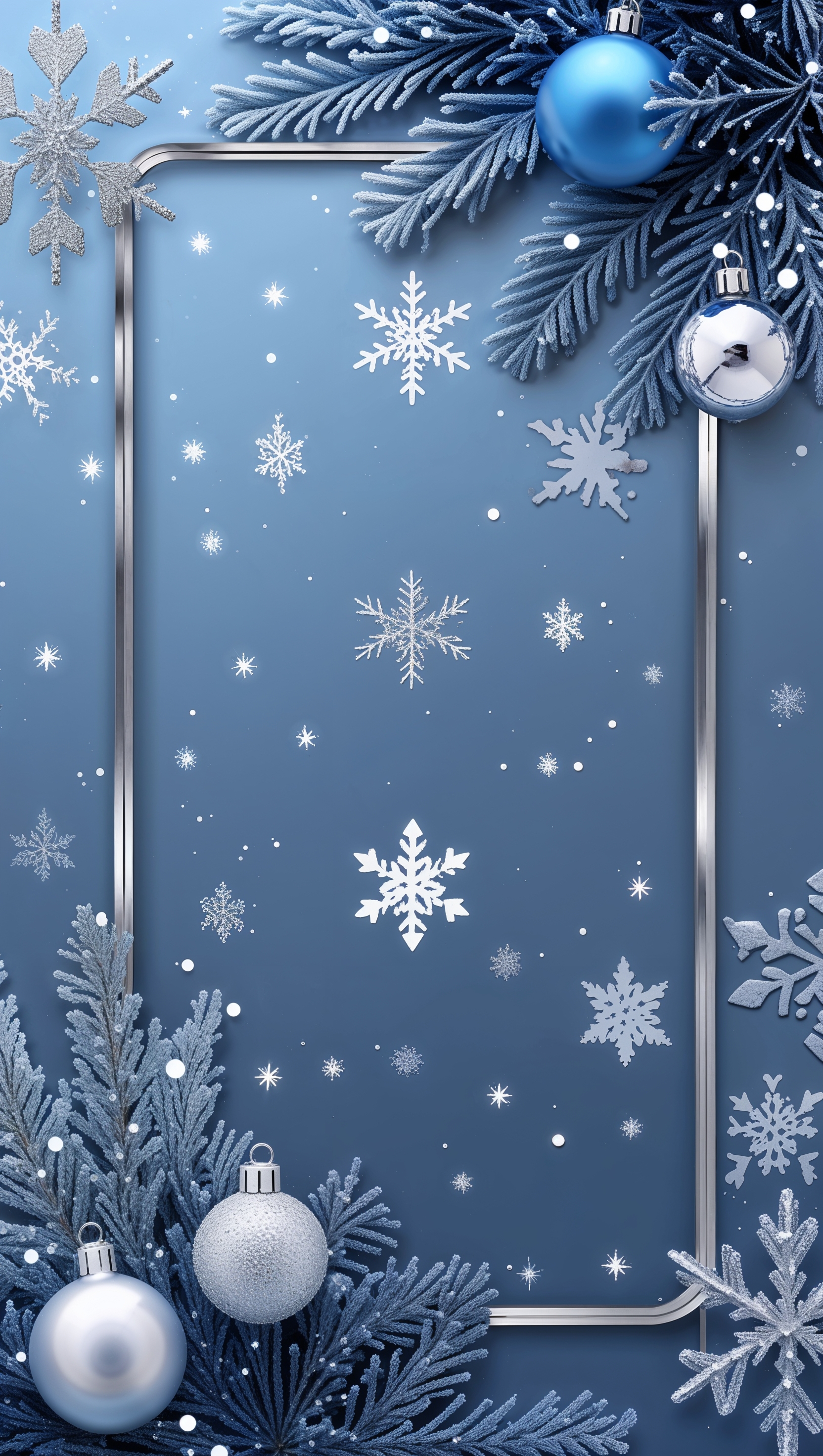1664x2944 iPhone Christmas wallpaper with blue and silver colors in preppy style