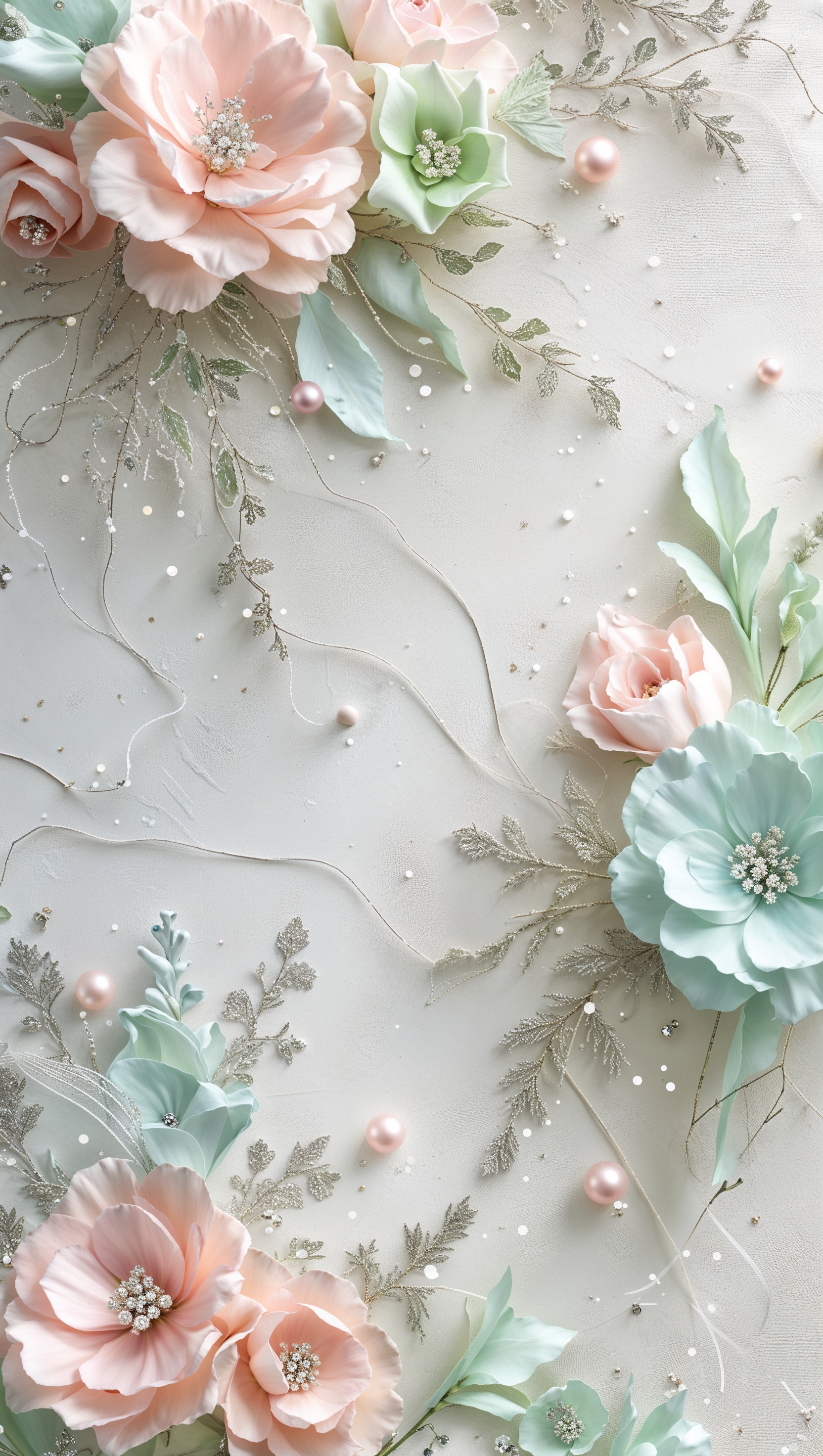 1664x2944 iPhone Christmas wallpaper with floral decorations and pastel colors