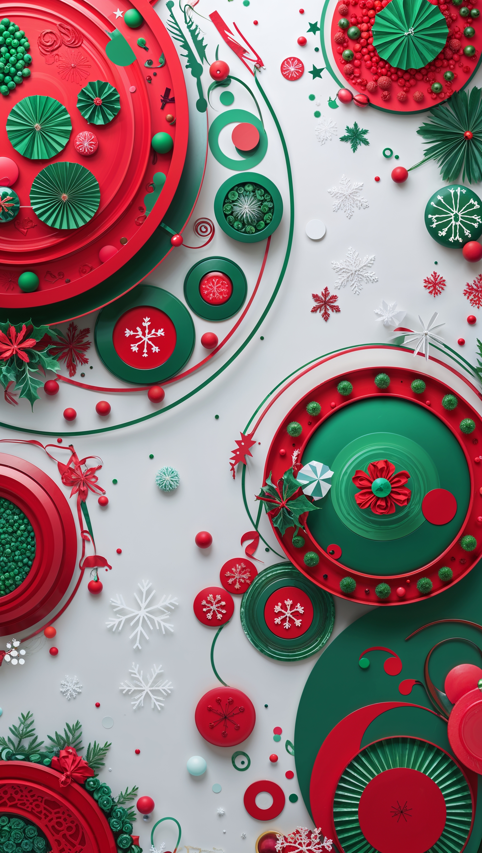 1664x2944 iPhone Christmas wallpaper with circular patterns and red and green colors