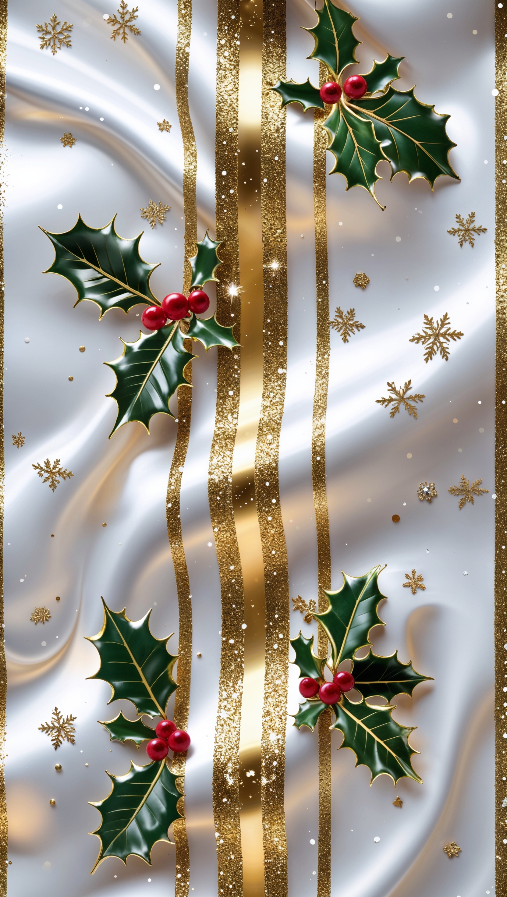 1664x2944 iPhone Christmas wallpaper with beautiful designs and golden stripes