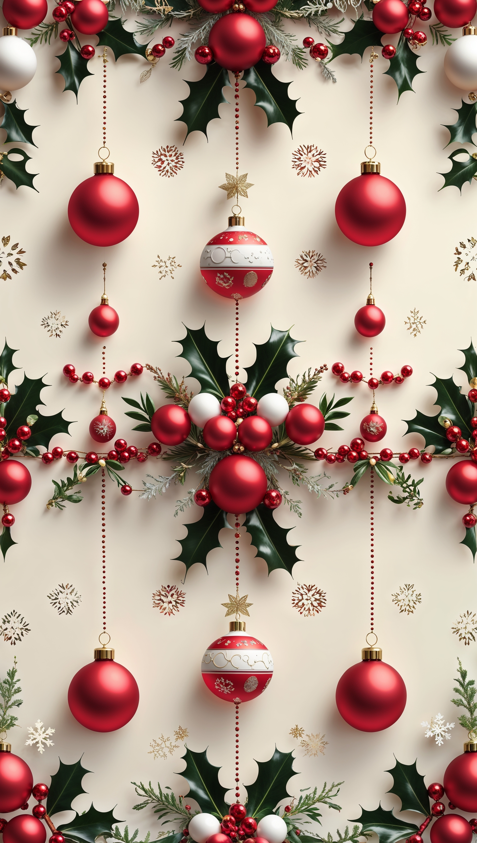 1664x2944 iPhone wallpaper with classic Christmas design and red and white decorations