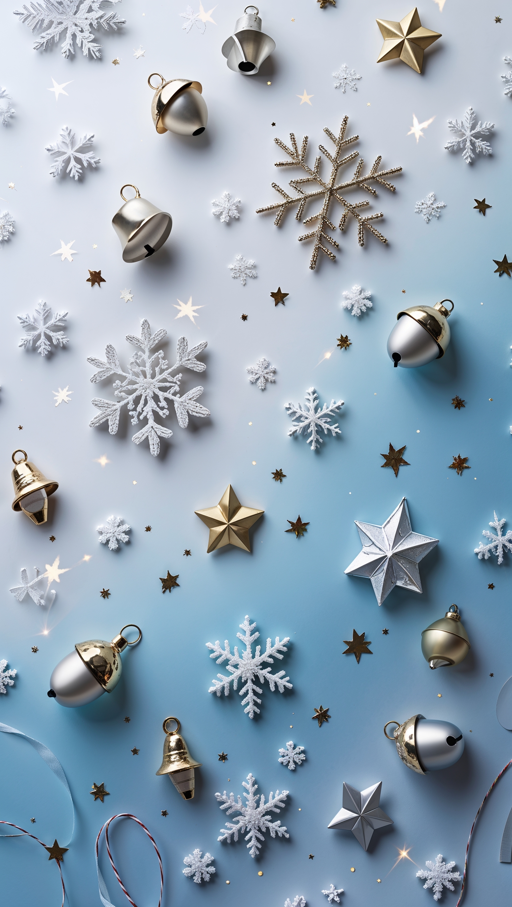 1664x2944 iPhone wallpaper with Christmas decorations on white and blue backgrounds