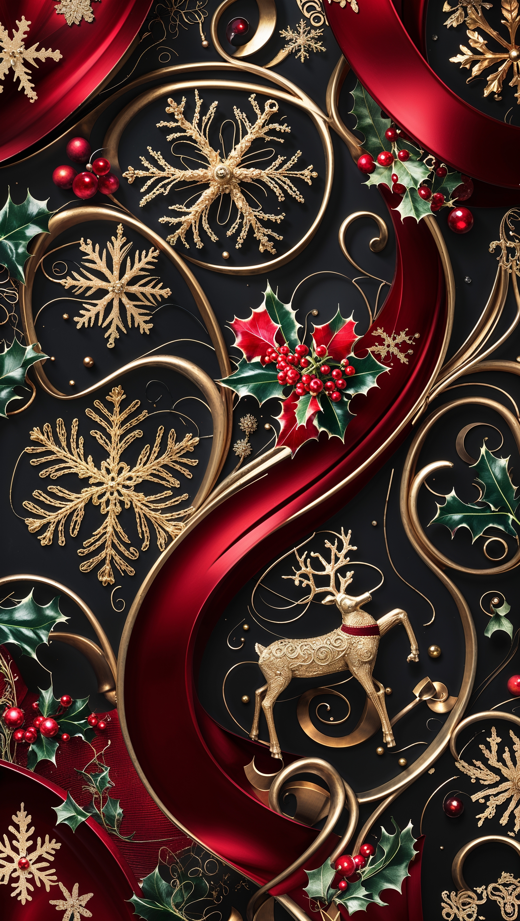 1664x2944 iPhone wallpaper with chic gold and red designs and Christmas symbols