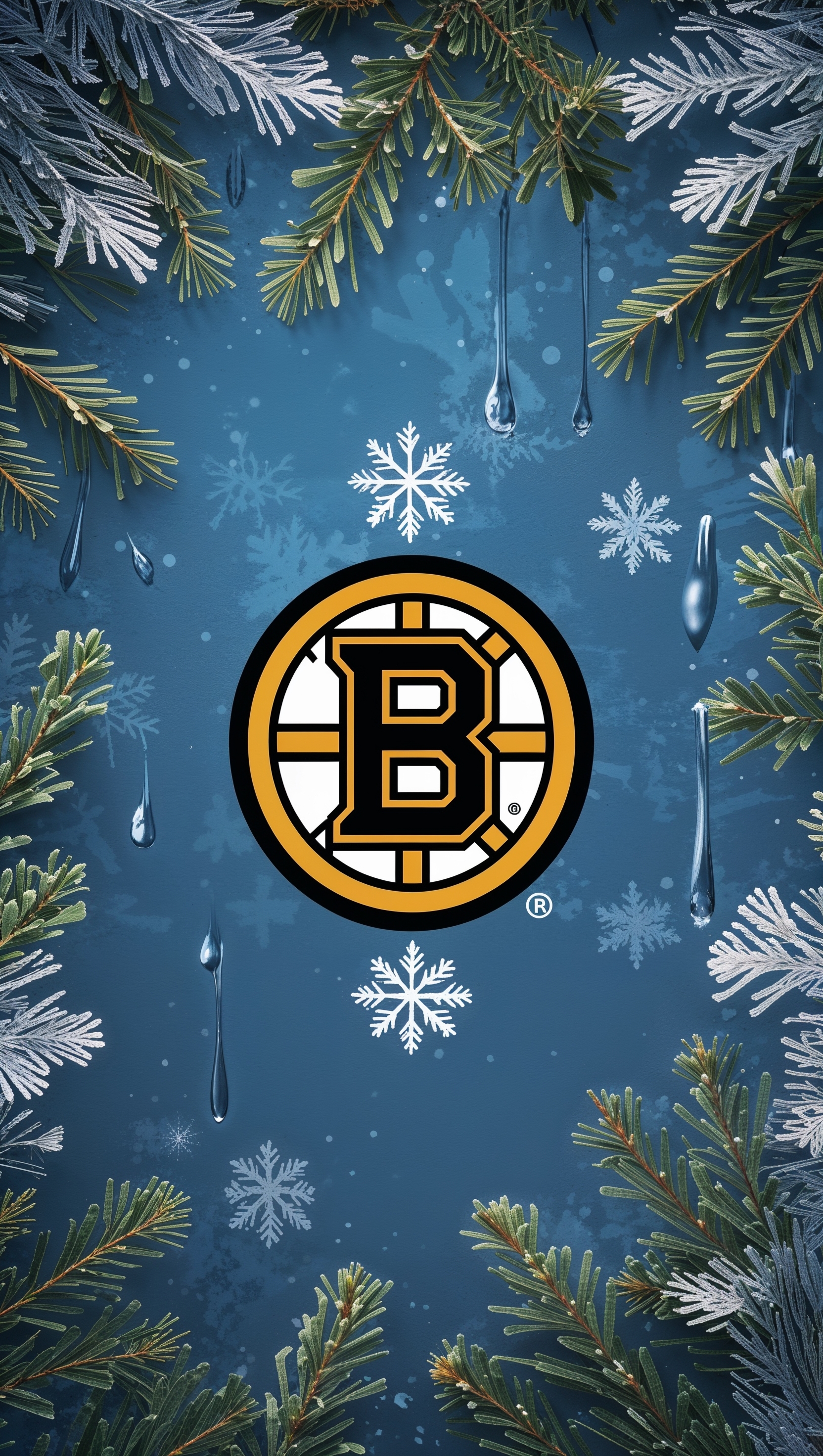 1664x2944 Winter-themed iPhone wallpaper with Boston Bruins design