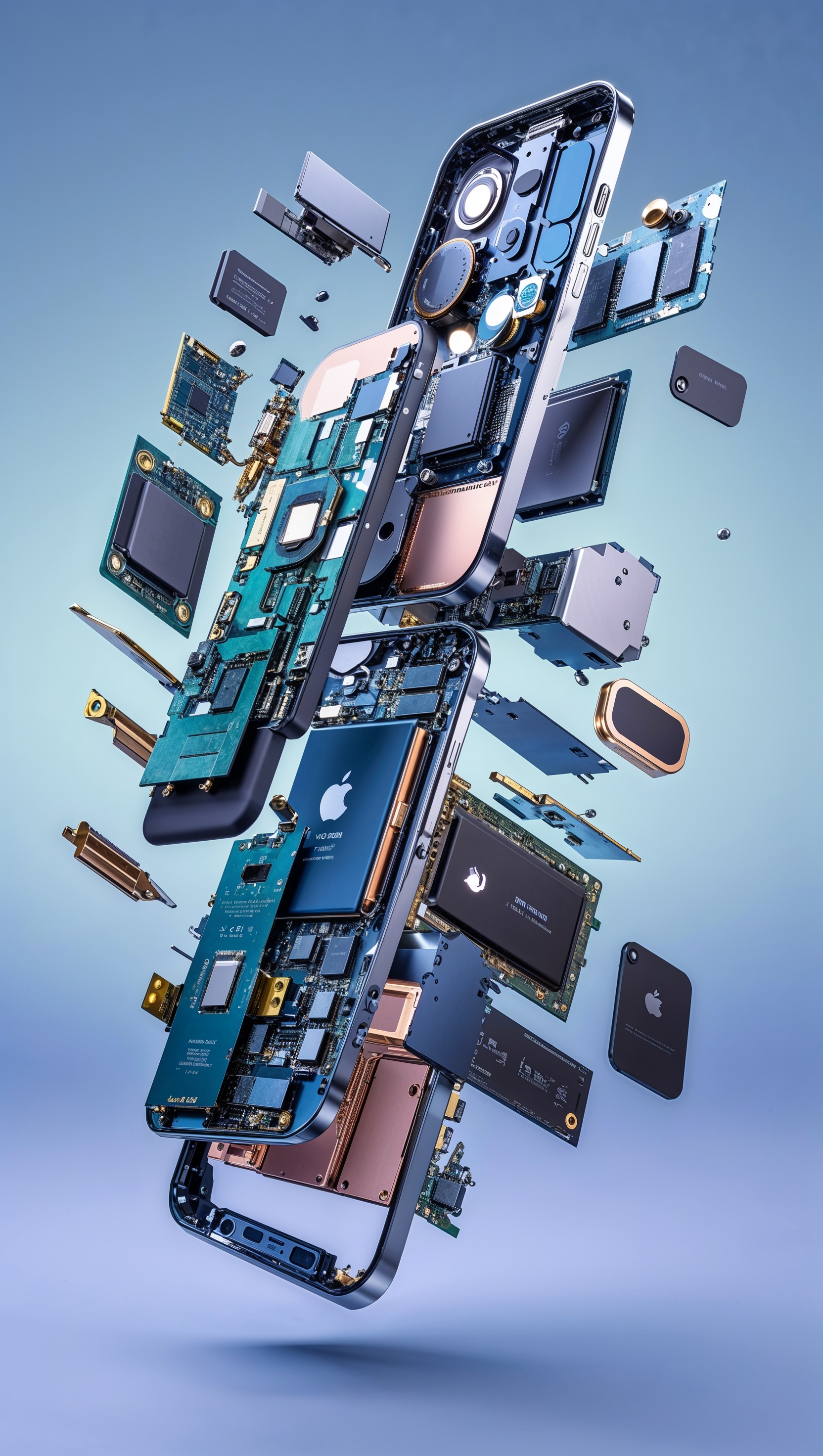 1664x2944 Exploded view of iPhone components in a 3D wallpaper