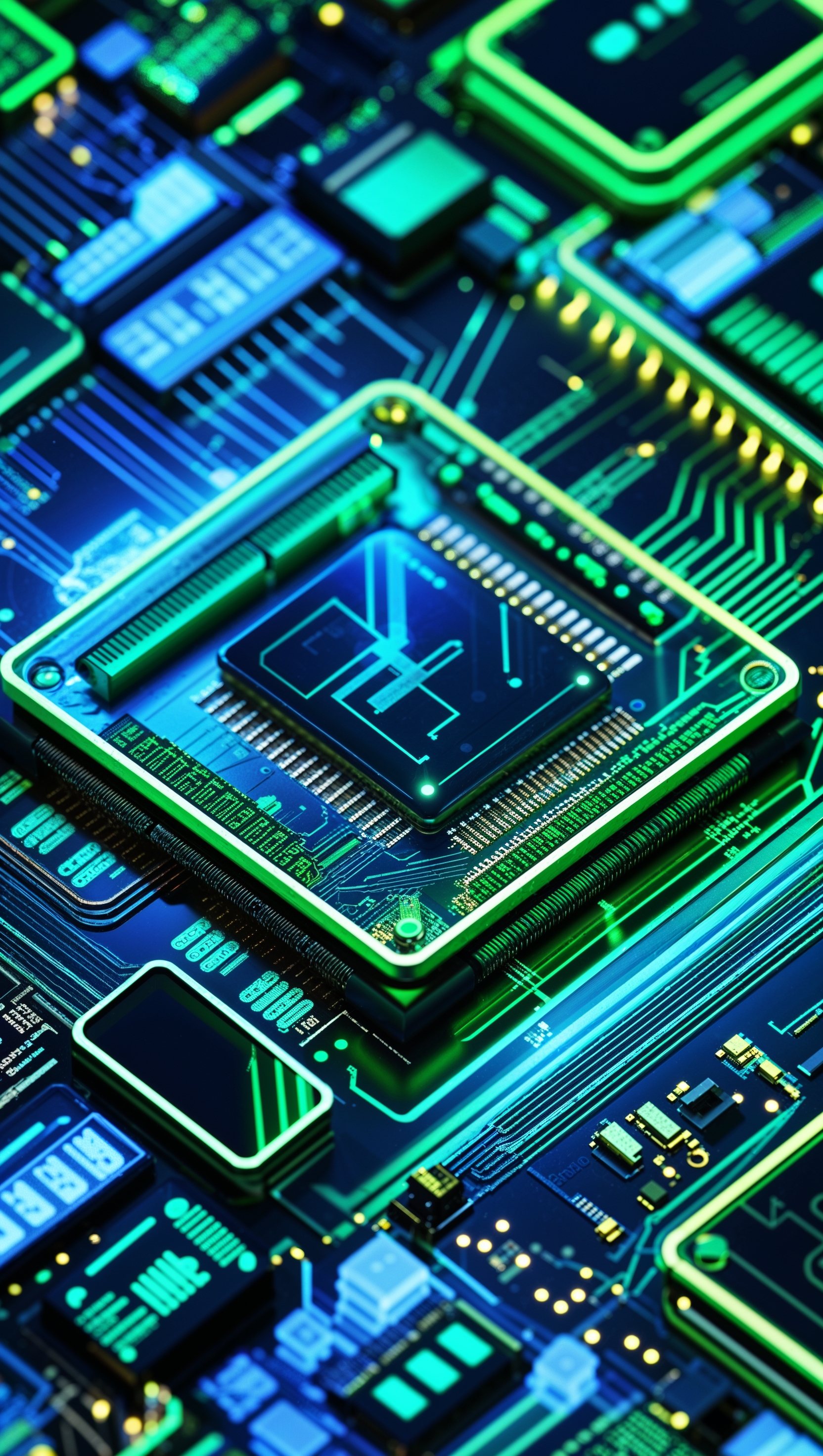 1664x2944 Transparent iPhone wallpaper showing circuits and chips in neon style