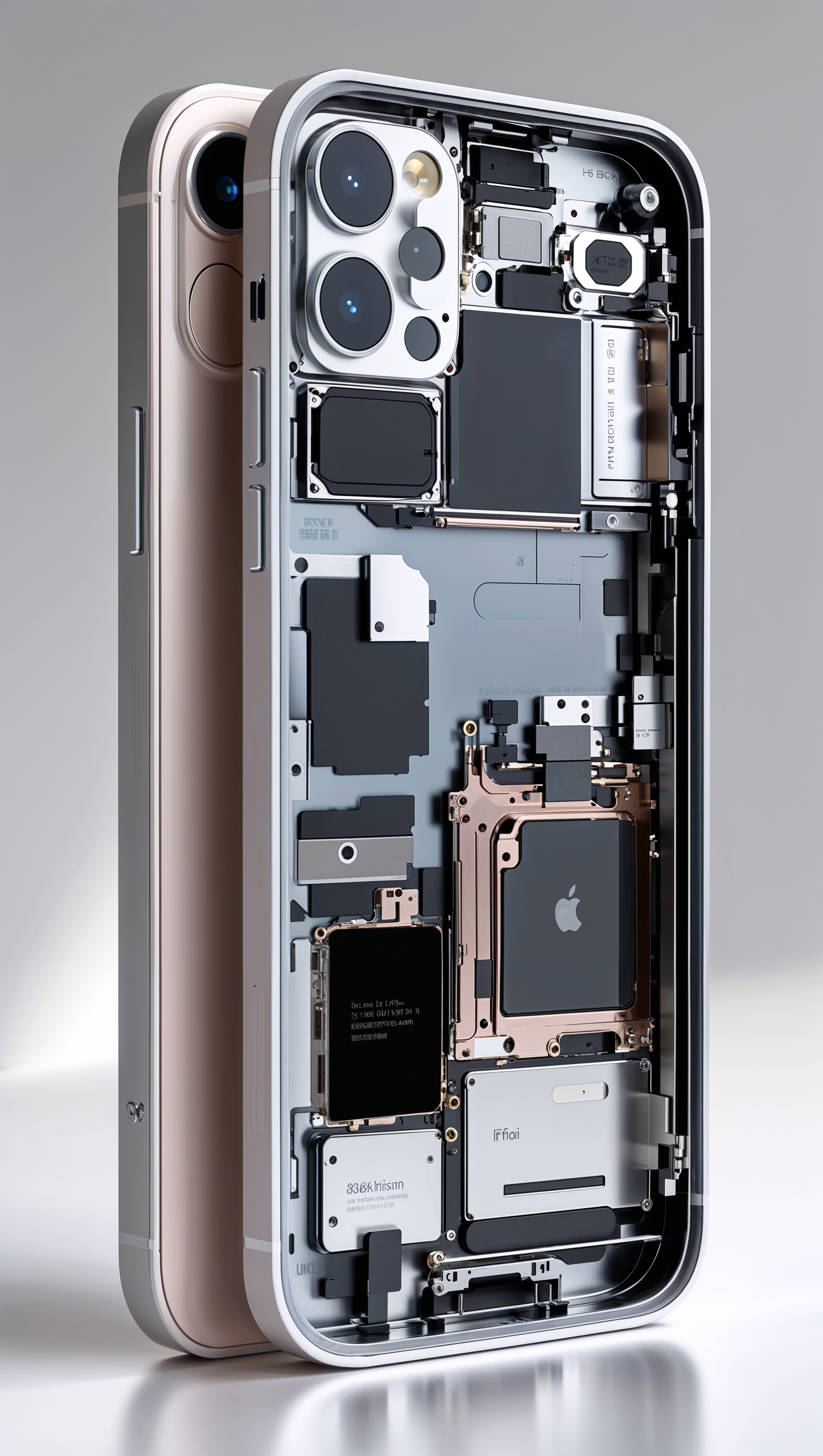 1664x2944 Realistic iPhone teardown view with labeled parts