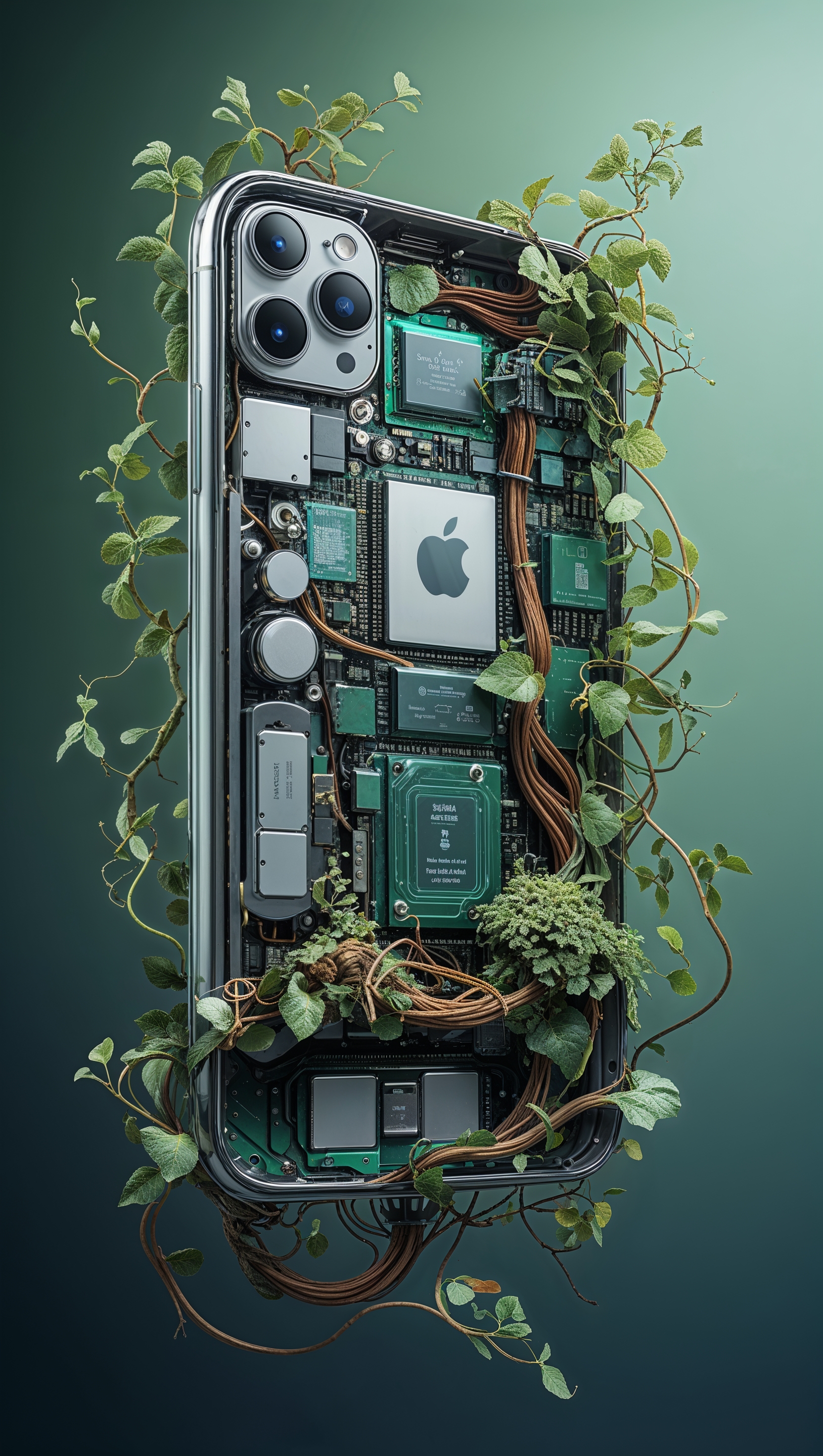 1664x2944 Artistic fusion of iPhone internals and nature elements