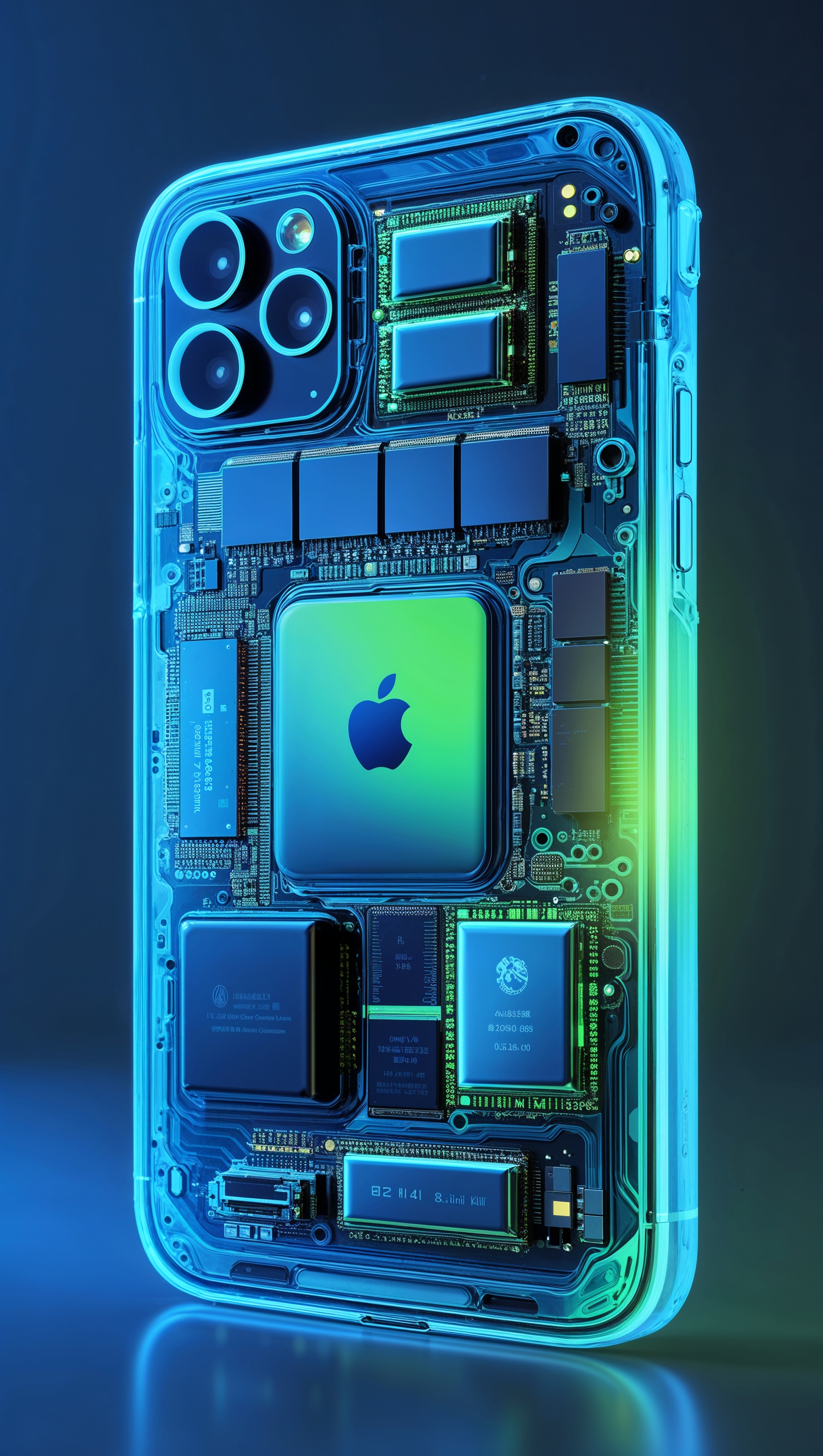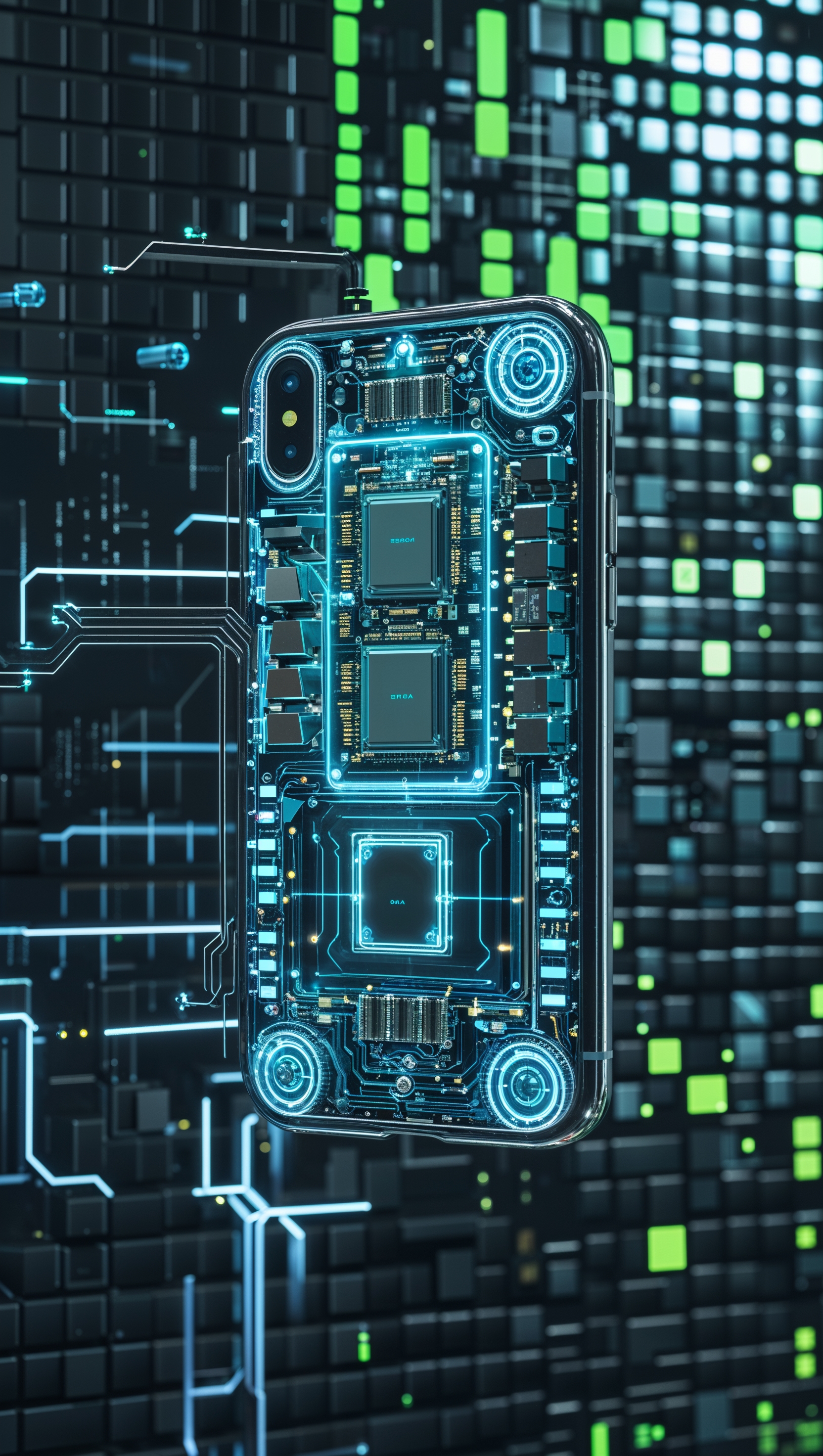 1664x2944 Artistic X-ray composite of iPhone internals with glowing effects