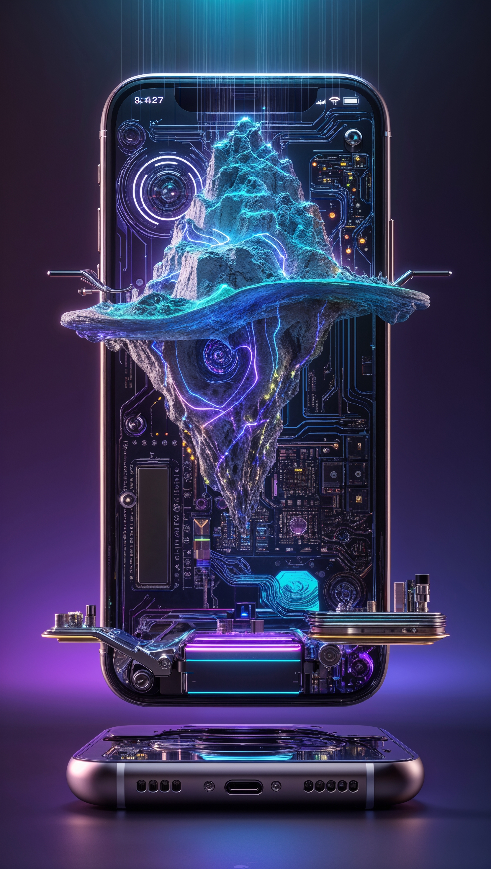 1664x2944 Surreal version of iPhone internals with cosmic elements