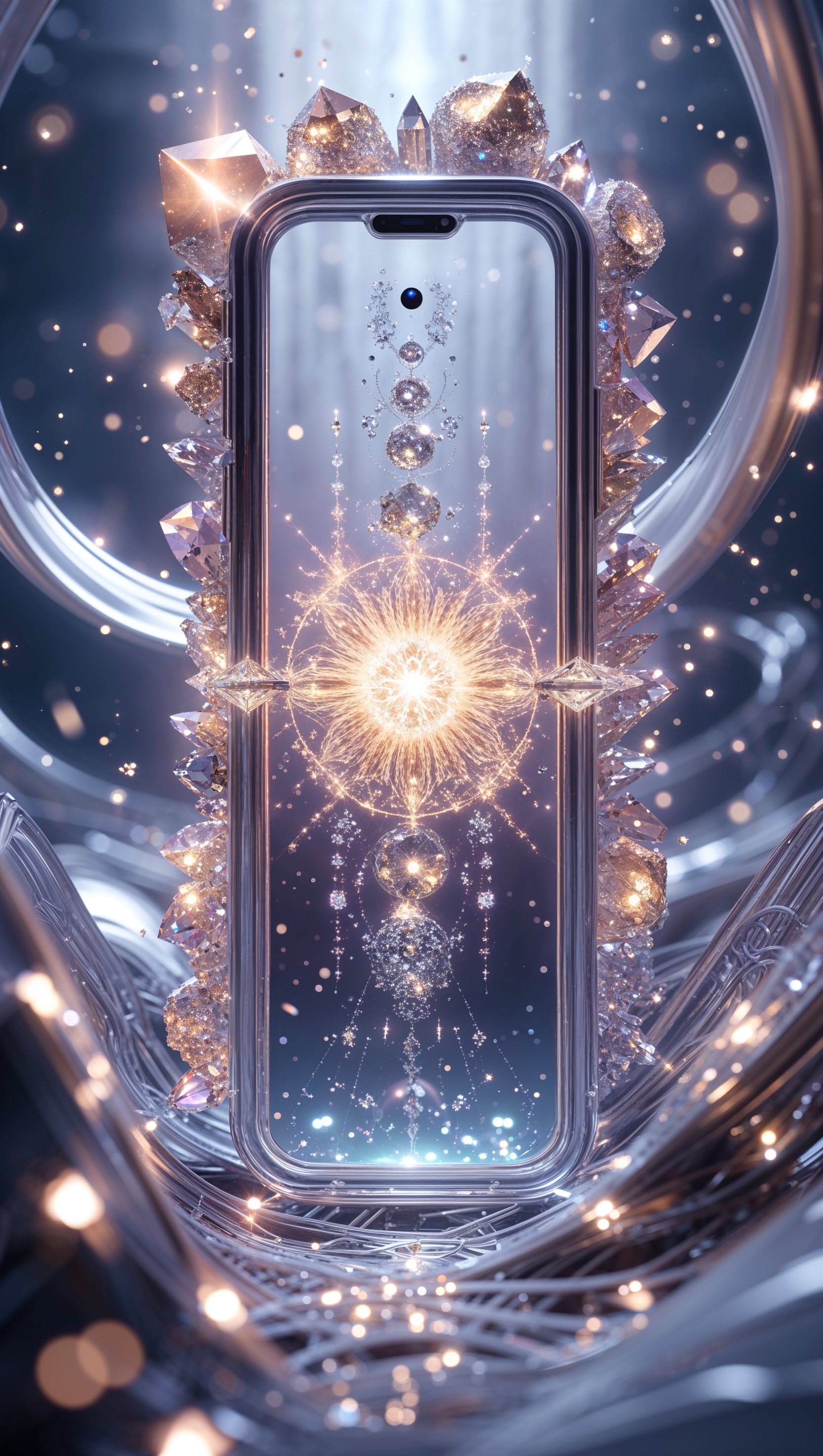 1664x2944 Fantasy iPhone interior with crystals and energy cores