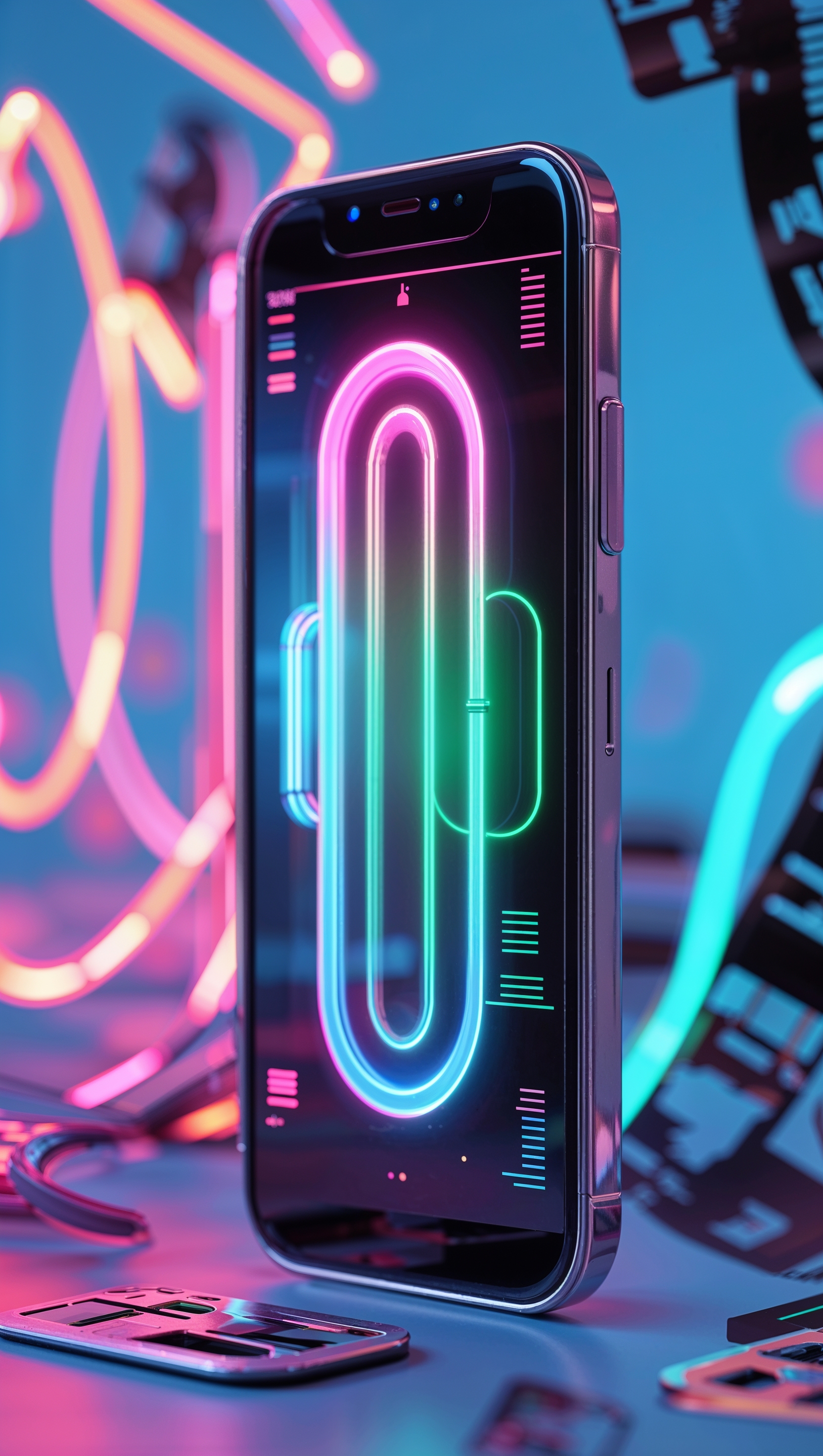 1664x2944 Vaporwave-style iPhone interior with retro neon lights