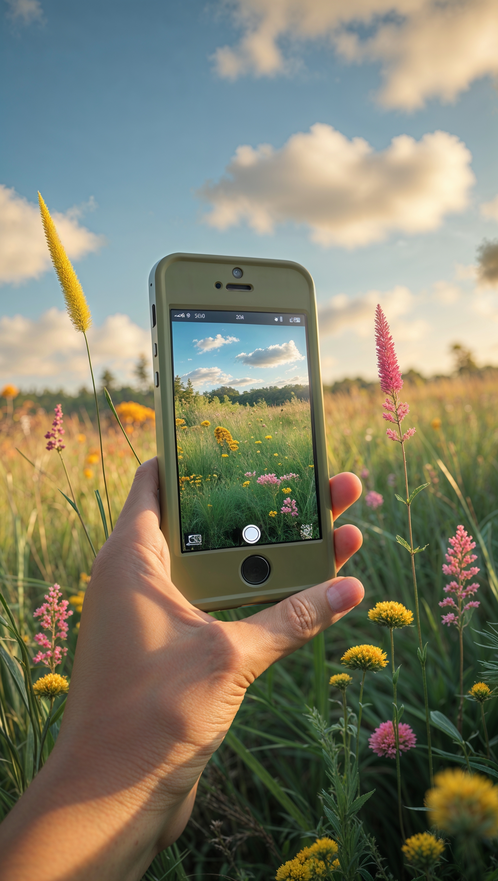 1664x2944 Olive green iPhone in a woman's hand under natural light