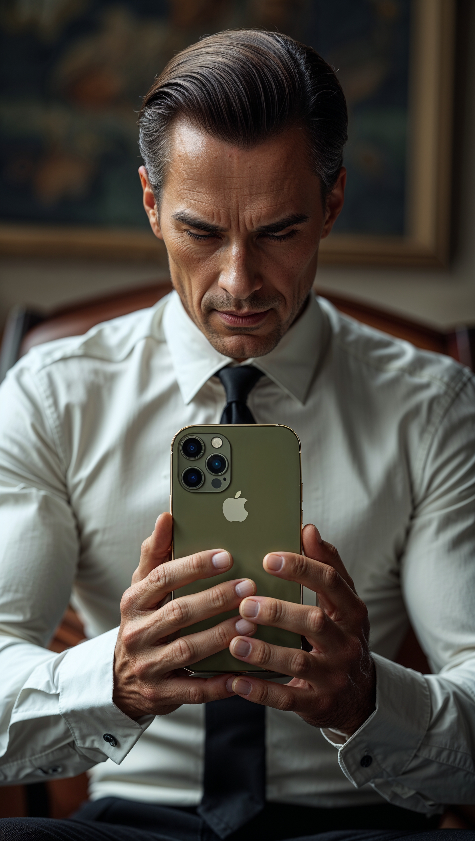 1664x2944 Olive green iPhone next to a classic wristwatch