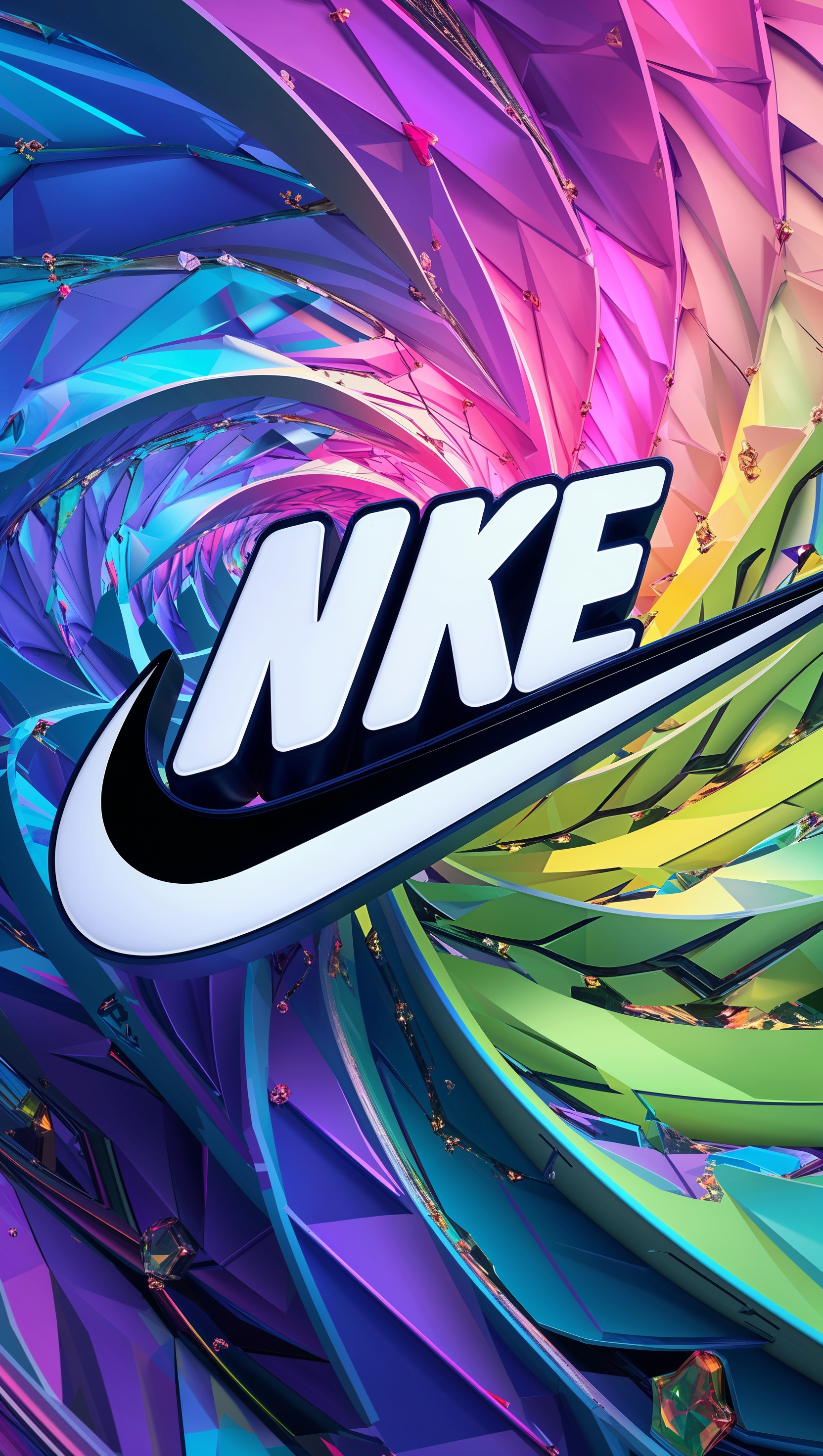 Create a 4K image of the Nike logo with geometric patterns and a colorful background for an iPhone 1664x2944 Create a 4K image of the Nike logo with geometric patterns and a colorful background for an iPhone