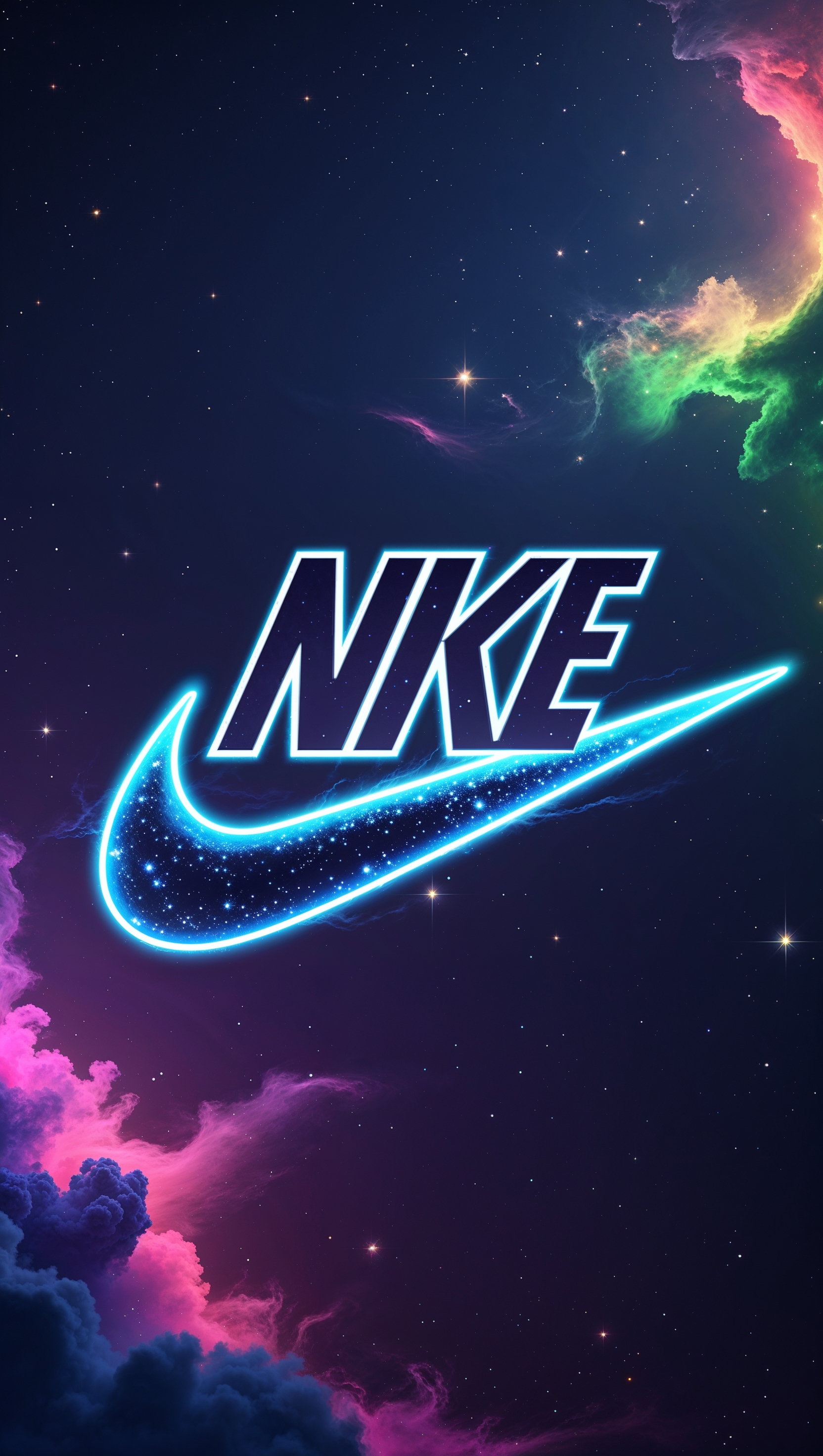Design a 4K Nike wallpaper with glowing effects and a space-themed background for an iPhone 1664x2944 Design a 4K Nike wallpaper with glowing effects and a space-themed background for an iPhone