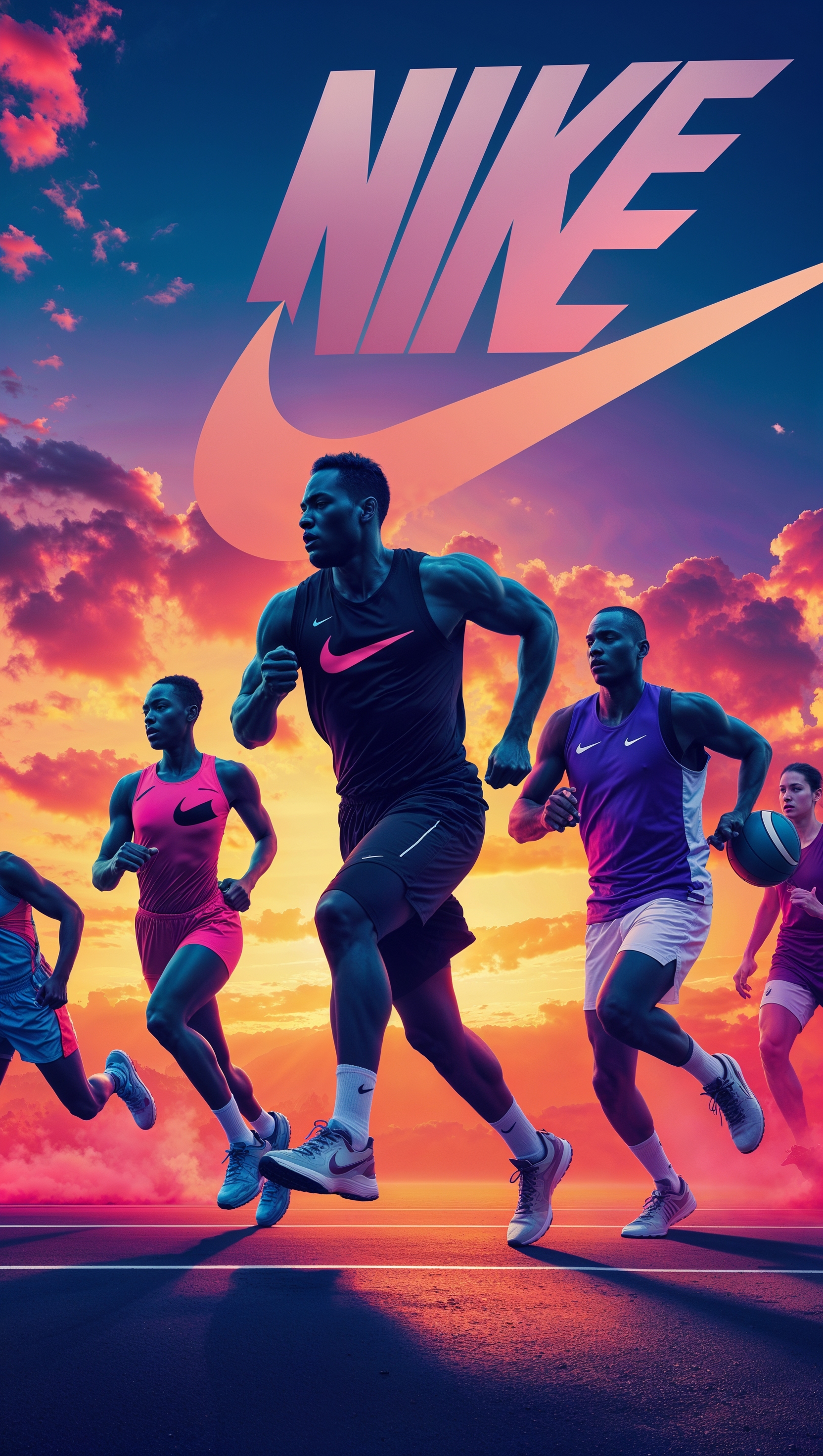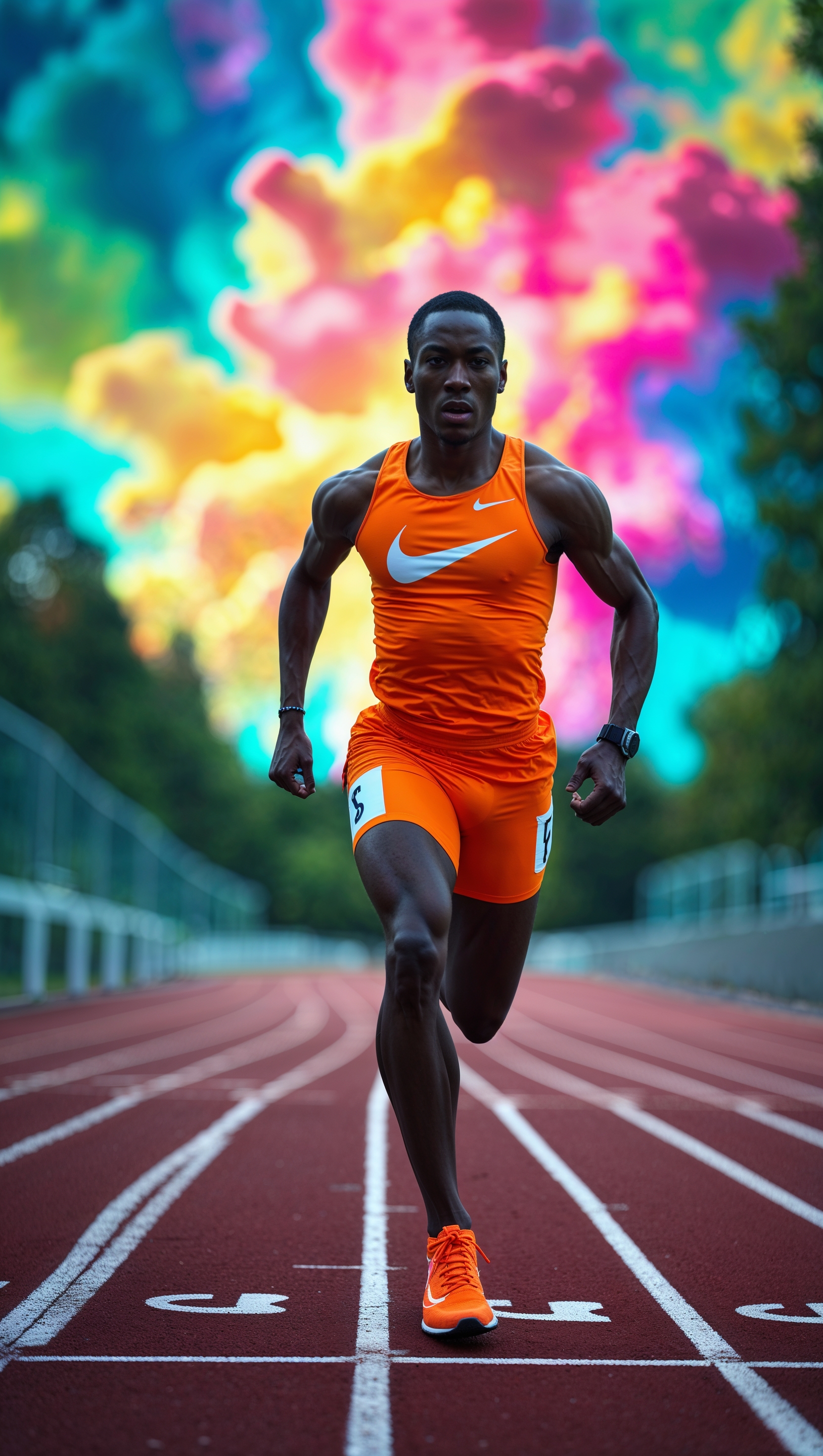 Create a 4K image of an athlete running in Nike gear with a colorful background for an iPhone 1664x2944 Create a 4K image of an athlete running in Nike gear with a colorful background for an iPhone