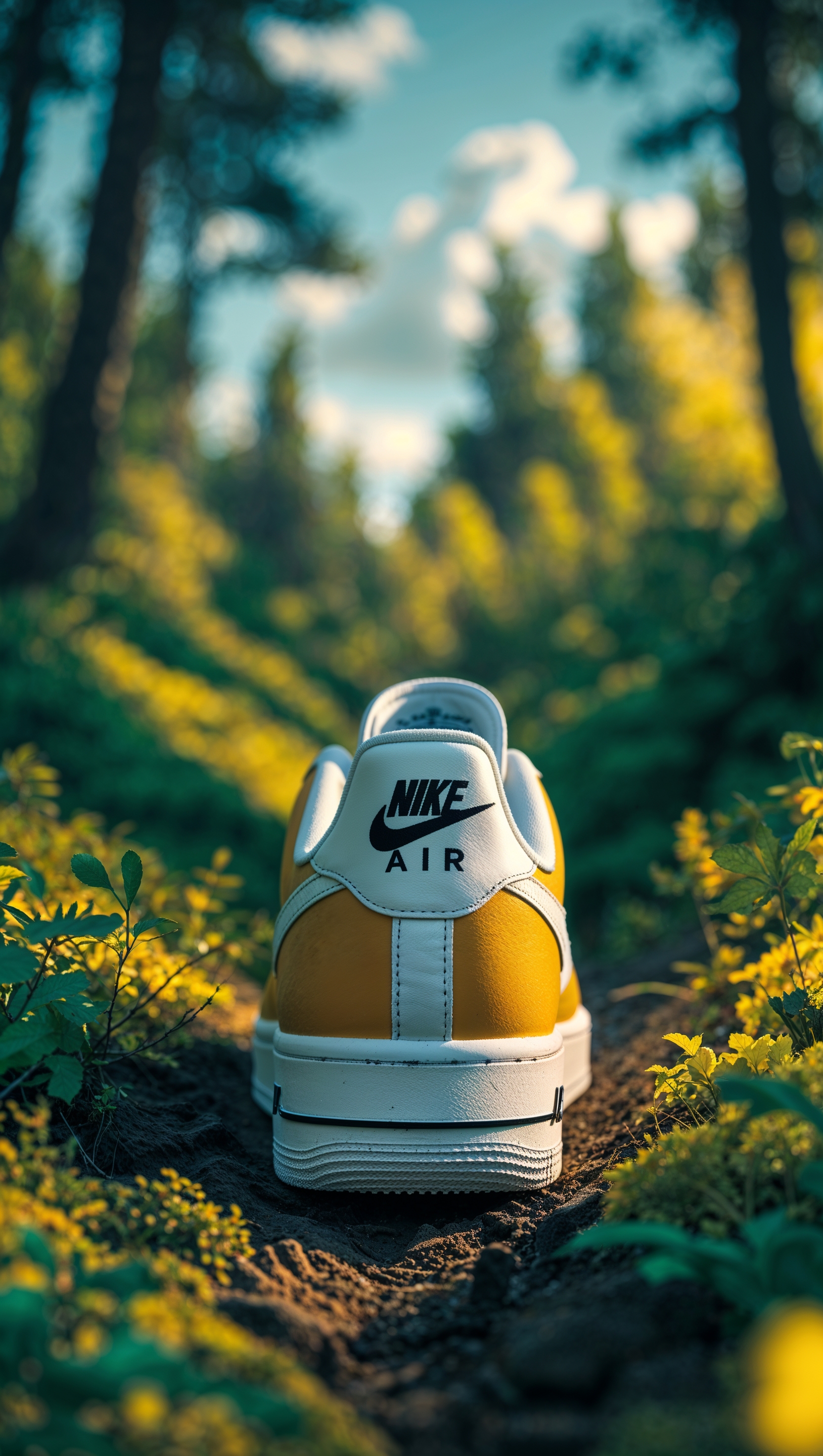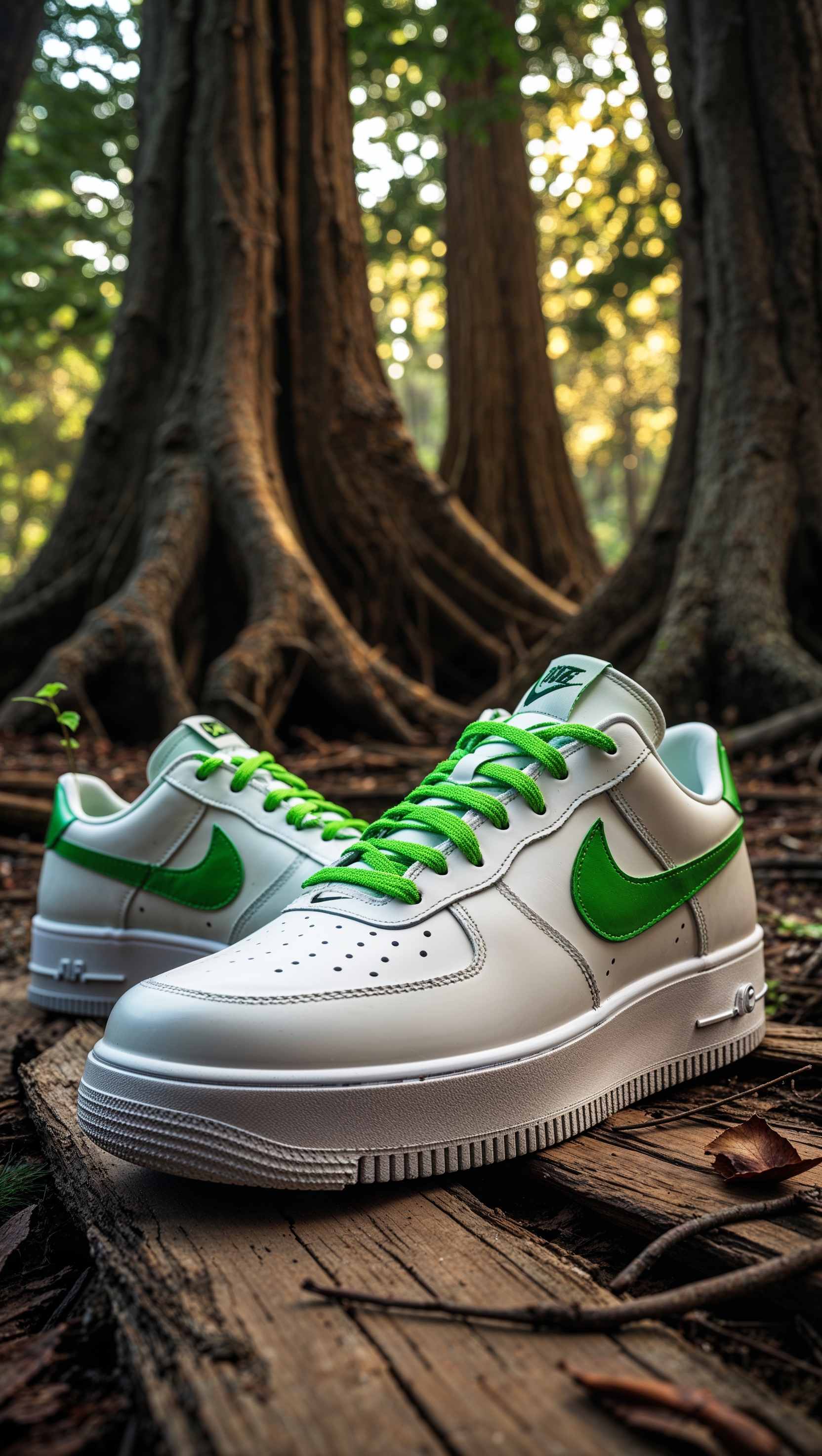 Create a 4K image of a pair of Nike shoes with a nature and trees background for an iPhone 1664x2944 Create a 4K image of a pair of Nike shoes with a nature and trees background for an iPhone