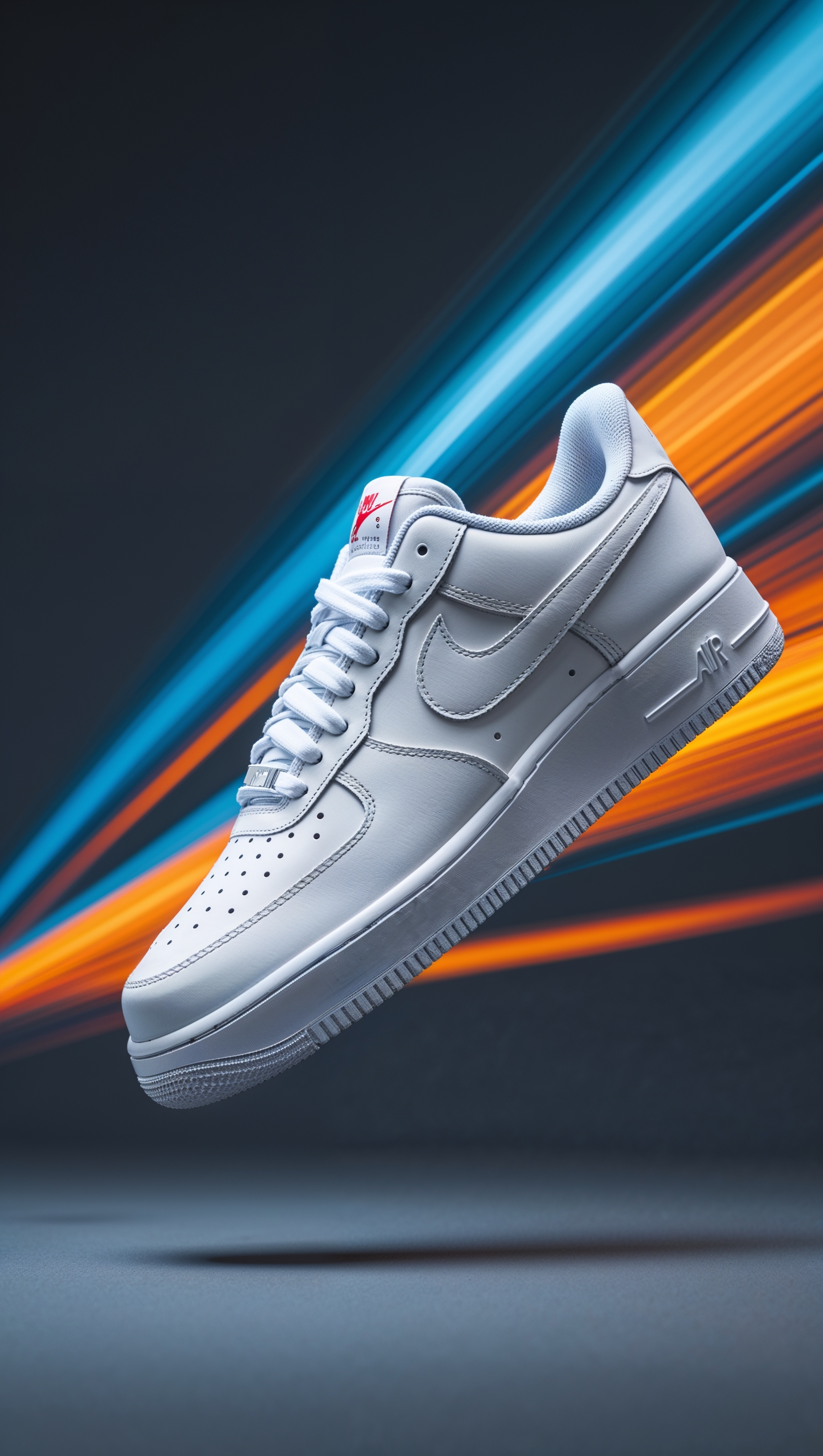 Create a 4K image of a Nike sneaker in motion with a dynamic speed background for an iPhone 1664x2944 Create a 4K image of a Nike sneaker in motion with a dynamic speed background for an iPhone