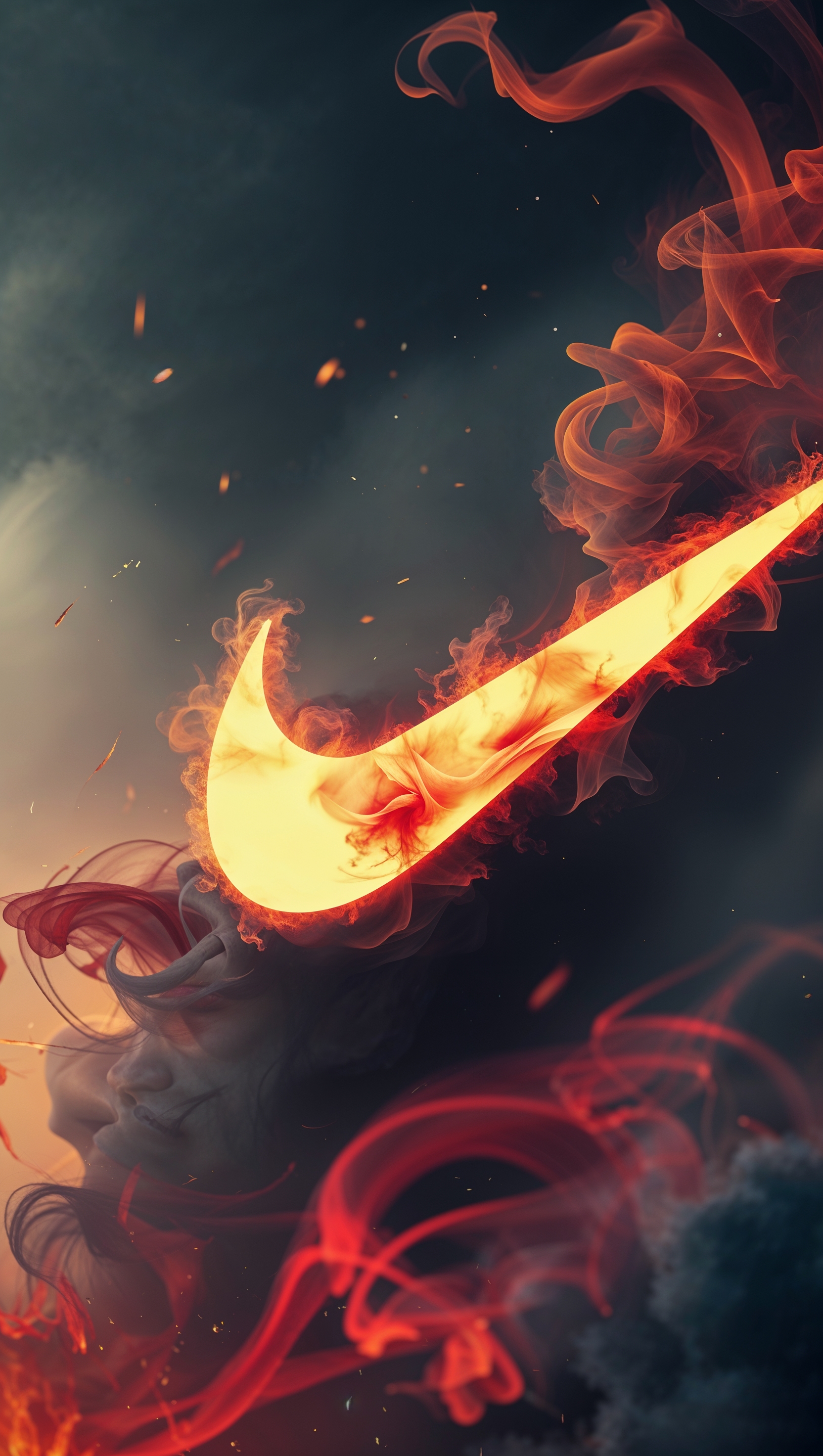 Create a 4K Nike logo wallpaper with smoke and fire effects for an iPhone 1664x2944 Create a 4K Nike logo wallpaper with smoke and fire effects for an iPhone