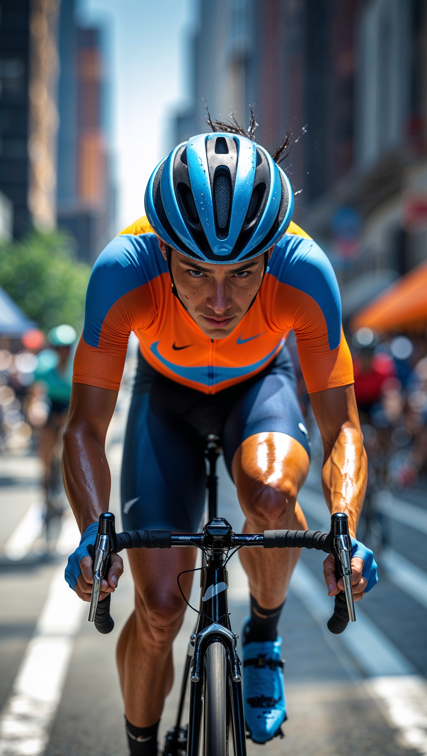 Design a 4K image of a cyclist in Nike gear riding through the streets for an iPhone 1664x2944 Design a 4K image of a cyclist in Nike gear riding through the streets for an iPhone