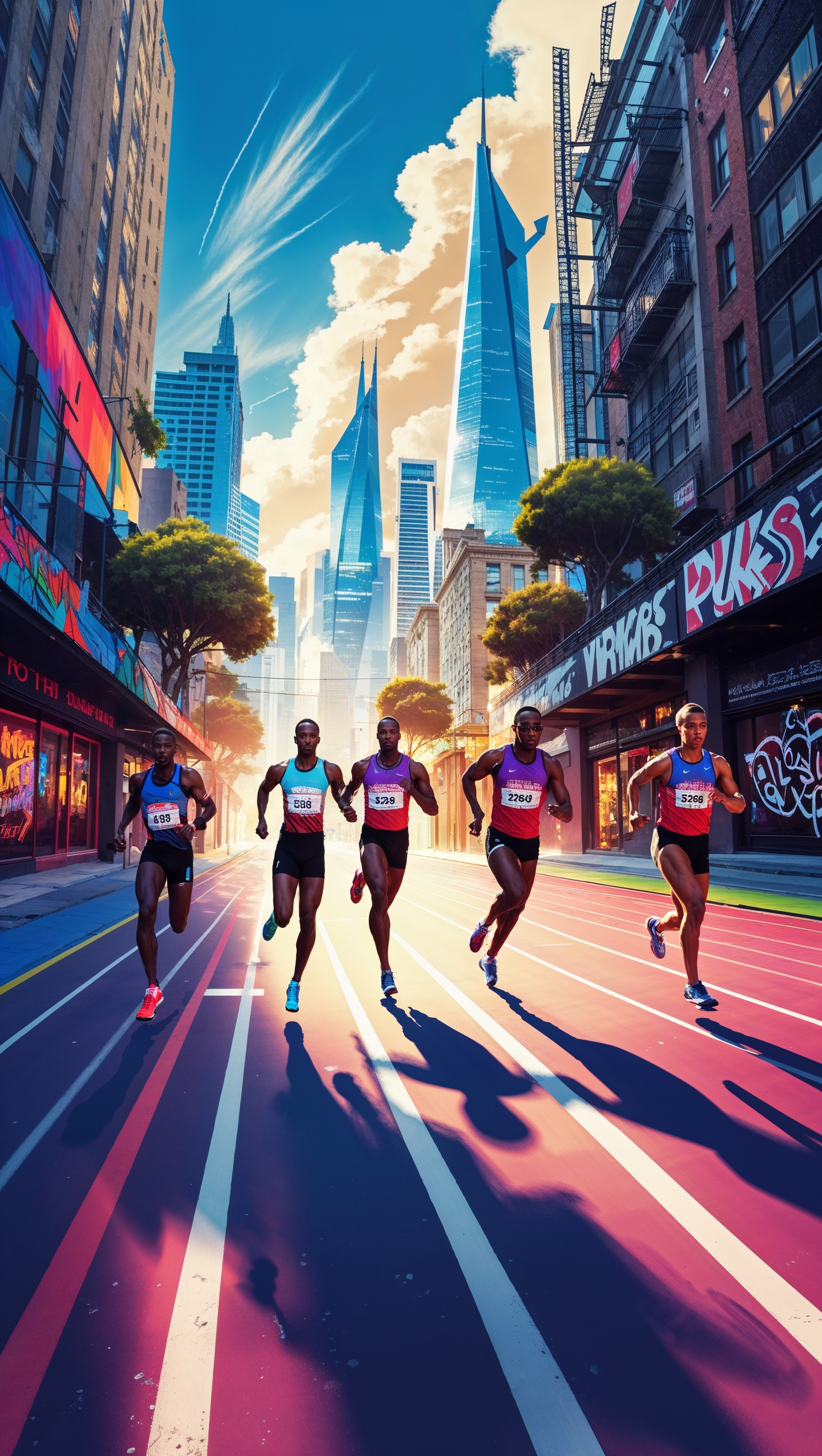 Design a 4K image of a race with Nike gear and an urban background for an iPhone 1664x2944 Design a 4K image of a race with Nike gear and an urban background for an iPhone